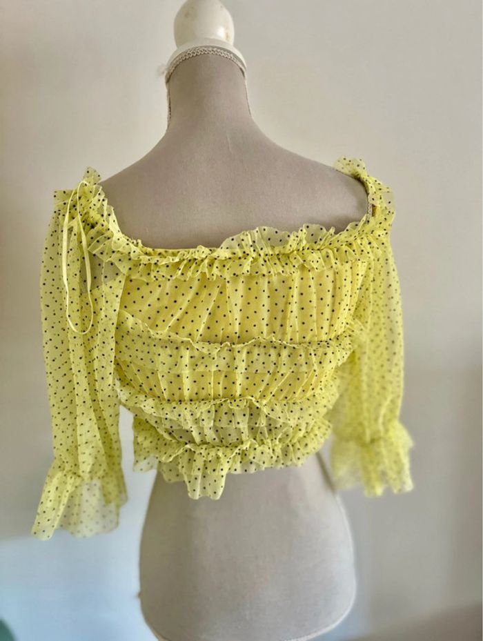 Blouse tulle volants jaune pale à pois noir Bershka 36 S - photo numéro 6
