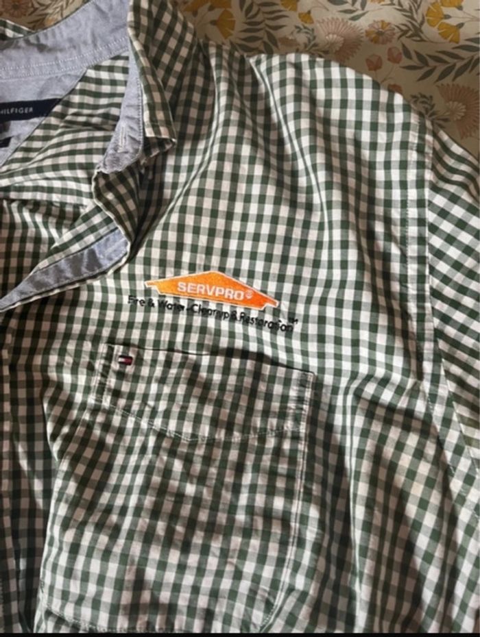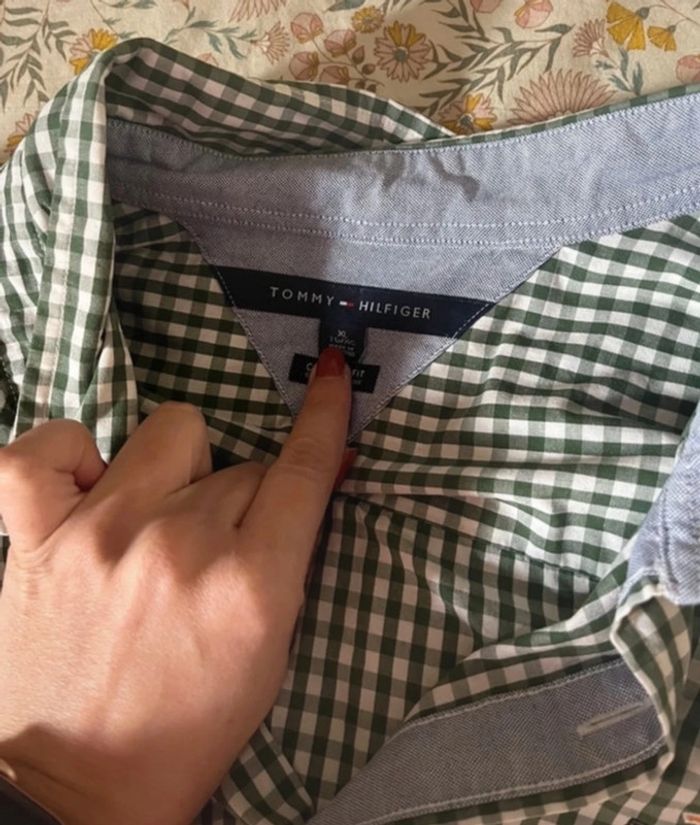 Chemise à carreaux blanc vert vintage Tommy Hilfiger - photo numéro 1