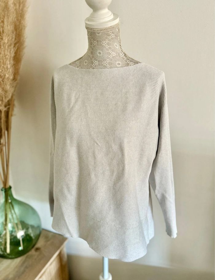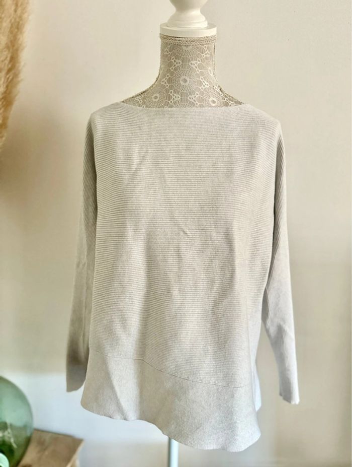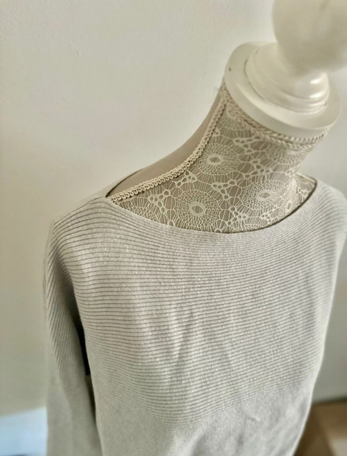Pull côtelé gris clair beige Calvin Klein 38 M - photo numéro 4