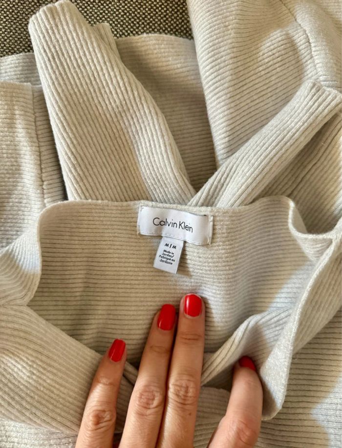 Pull côtelé gris clair beige Calvin Klein 38 M - photo numéro 7