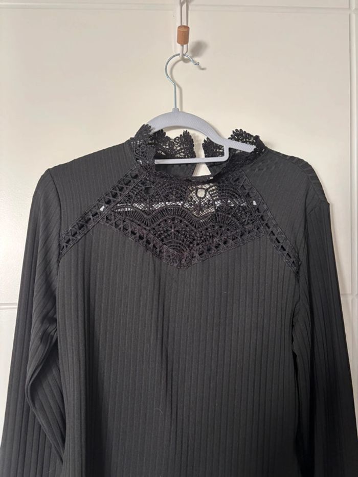 Haut noir col montant en dentelle - taille XL - photo numéro 5