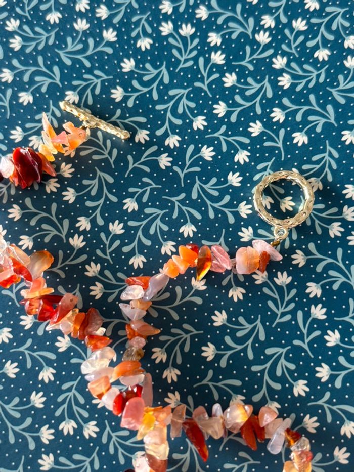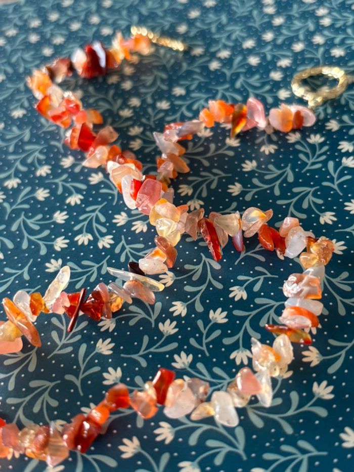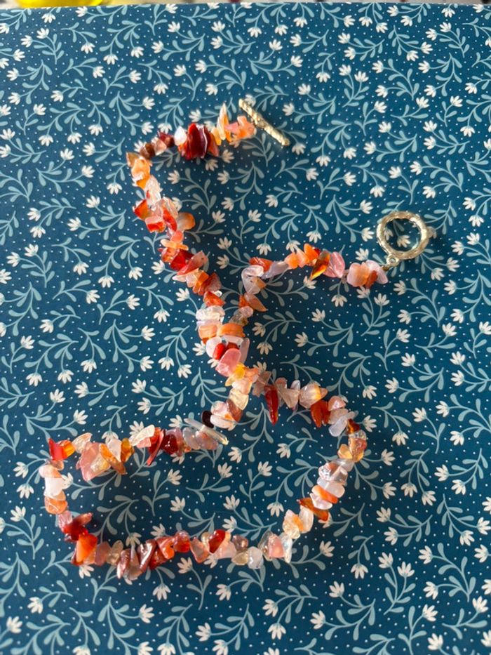 Collier en perles naturelles dans les tons orange et marron - photo numéro 1