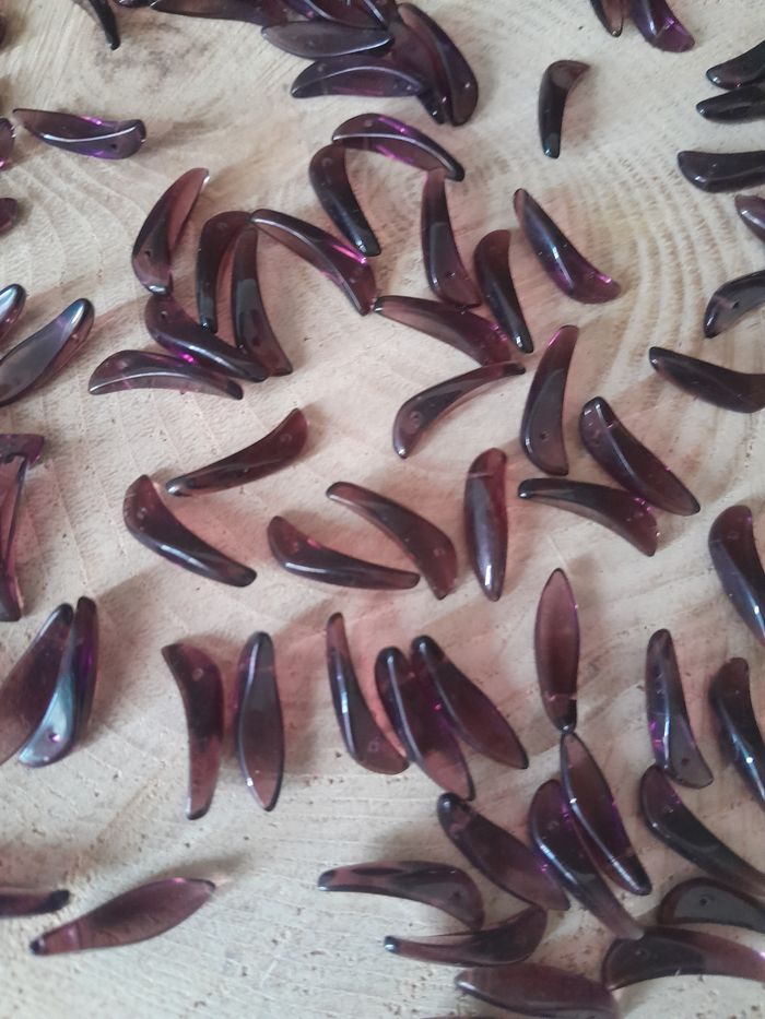 Lot de 50 perles en verre feuille violette 15euros le lot ou 30euros les 100 Dimensions sur les photos D'autres perles et accessoires de dispo dans mon dressing n'hésitez pas à jeter un coup d'œil ou à me demander