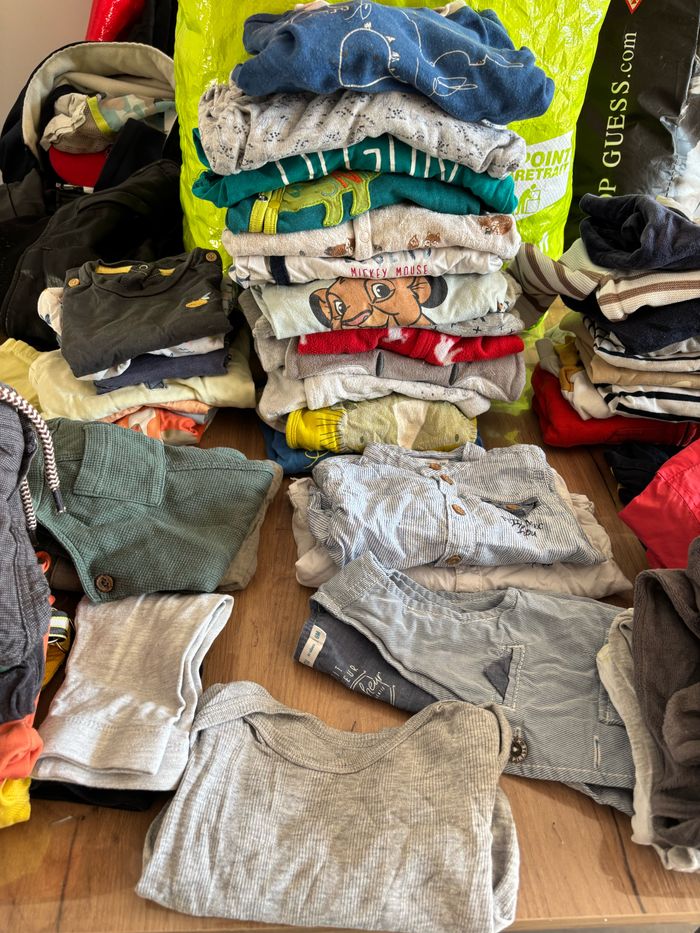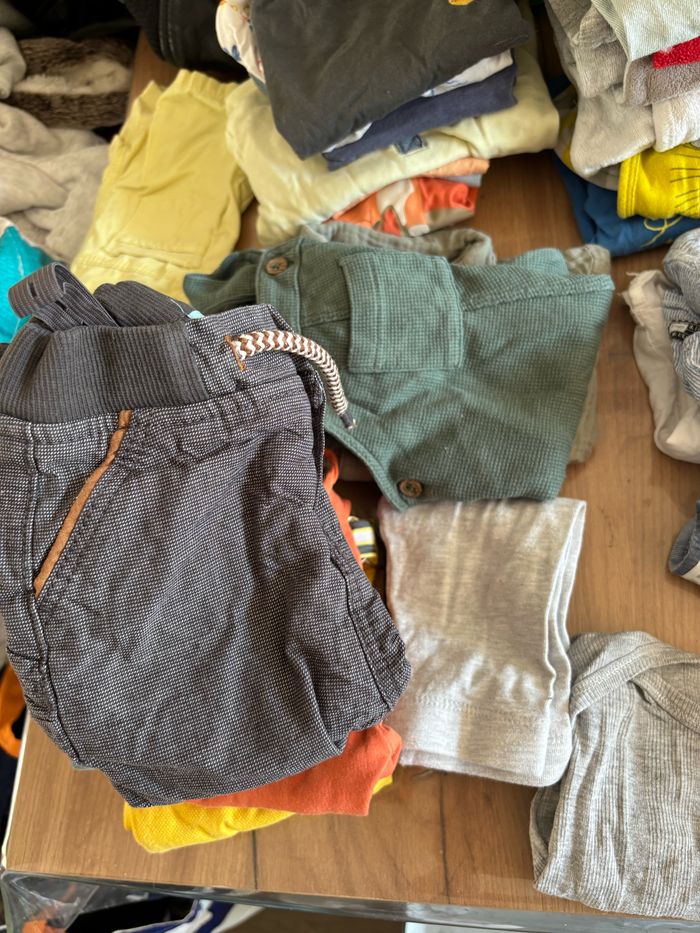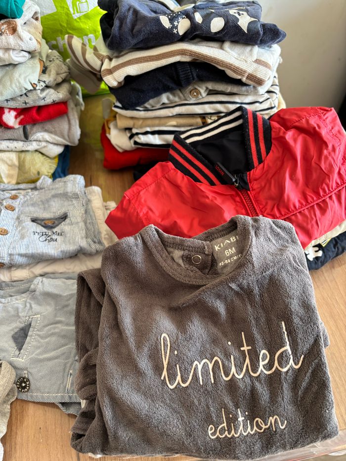 54 articles 6 pantalons /jogging 2 legging 2 chemises 1 body 16 pyjamas 1 gilet de costume 8 pull / gilet 3 manteaux léger dont 1 cuire 1 short 11 t-shirt 1 salopette 1 combinaison short 1 doudoune