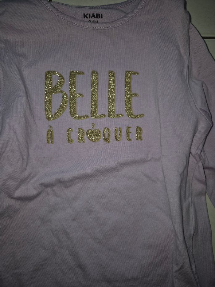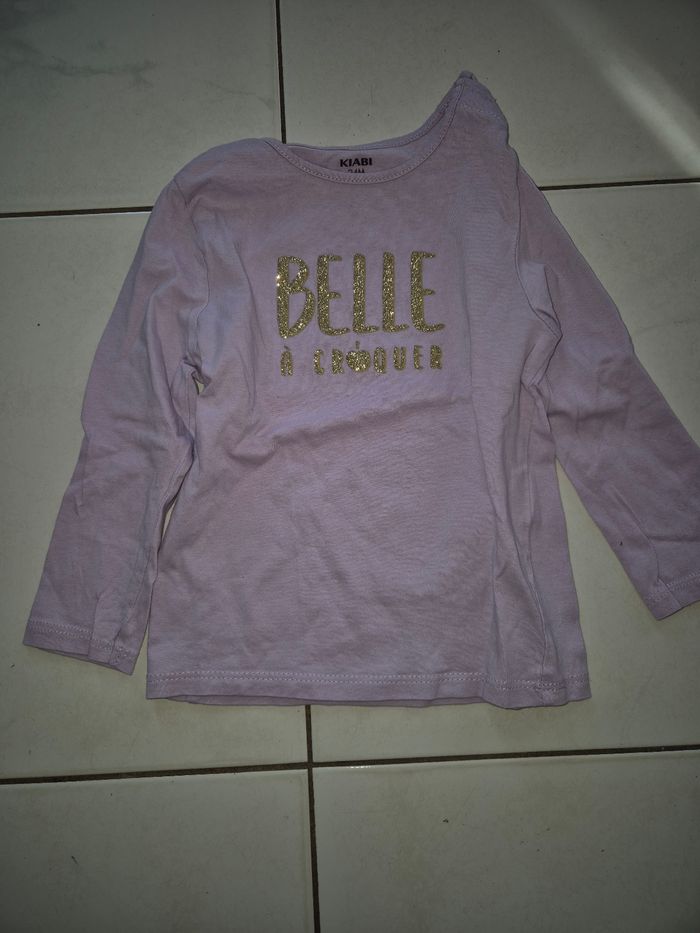 Vend Tee-shirt manche longue bébé fille violet avec inscription. Très bon état Kiabi 24 mois