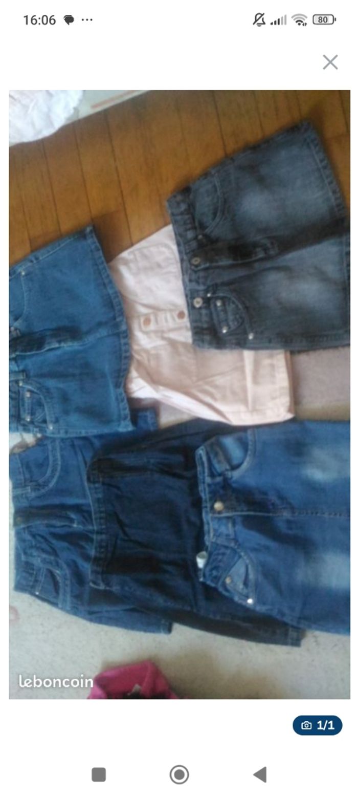 lot de 6 jupes en jeans en très bon état Taille 10 ans j'ai beaucoup d'autres habits en 10 filles, bcp de marque okaidi, orchestra, ikks,sergent major, kiabi ....photos à la demande