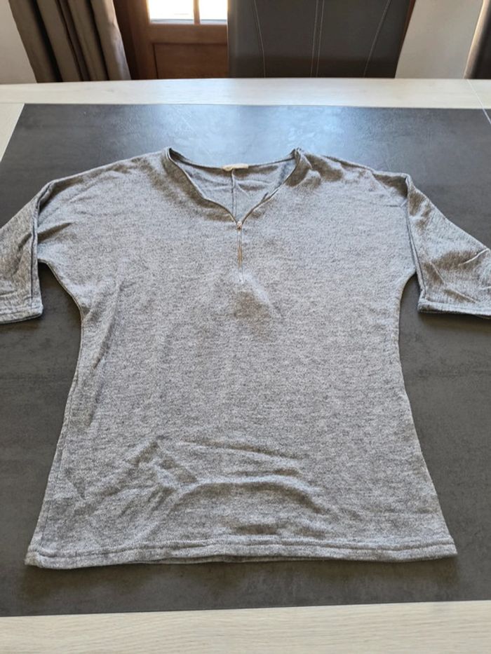 Vends tee shirt épais. De marque cache-cache. Taille 38. En très bon état. Couleur gris.
