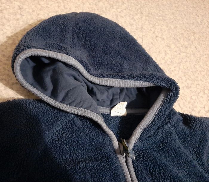 Gilet, veste à capuche douce, polaire, moltonnée bleu marine. En très bon état. Taille 9, 12mois. N'hésitez pas à aller faire un tour dans mon dressing de nombreux autres articles à vendre à des tout petits prix et prix dégressif sur les lots 🙂🌸je reste disponible pour toutes questions.
