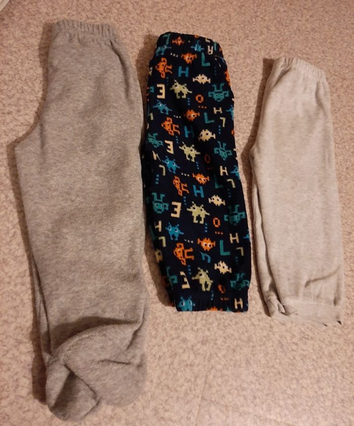 Lot de 3 pantalons d'intérieur/ de pyjamas. En très bon état, confortable, chaud et doux. Taille 18/24mois. L'un des bas à les pieds intégrés. N'hésitez pas à aller faire un tour dans mon dressing de nombreux autres articles à vendre à des tout petits prix et prix dégressif sur les lots 🙂🌸je reste disponible pour toutes questions.