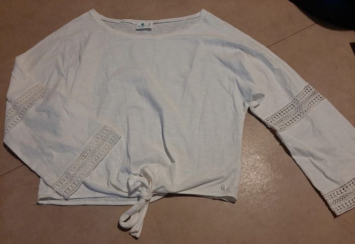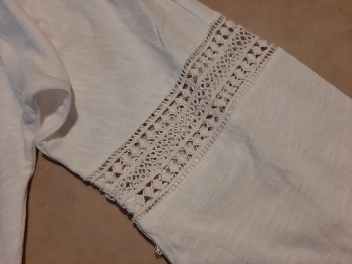 A nouer, avec de jolis détails au niveau des manches, brodés/ dentellés. En excellent état. Taille Xs mais va parfaitement à un S. Pour un look chic, bohème. N'hésitez pas à aller faire un tour dans mon dressing de nombreux autres articles à vendre à des tout petits prix et prix dégressif sur les lots 🙂🌸je reste disponible pour toutes questions .