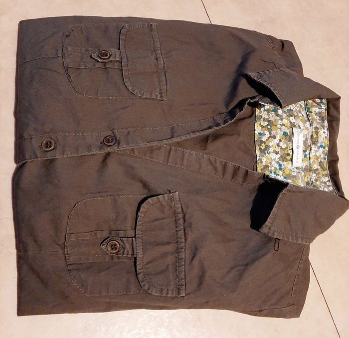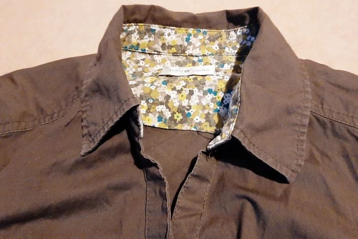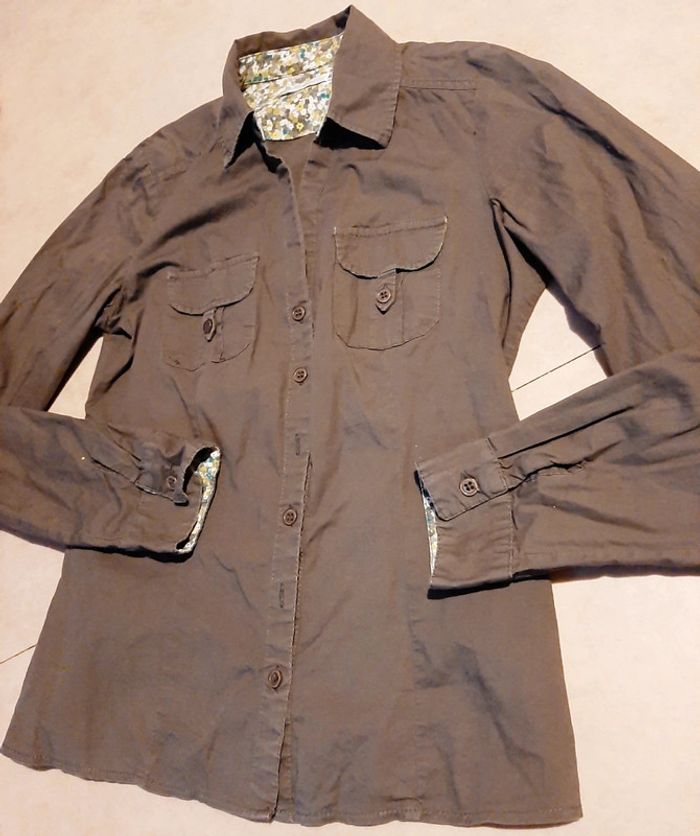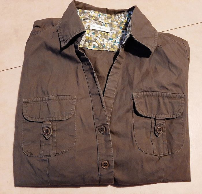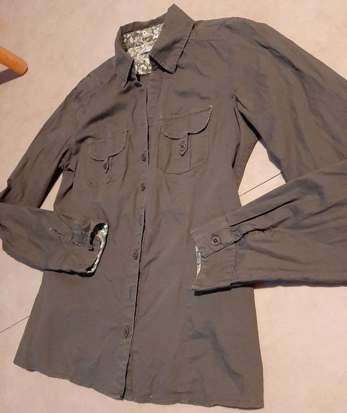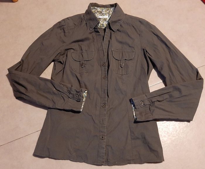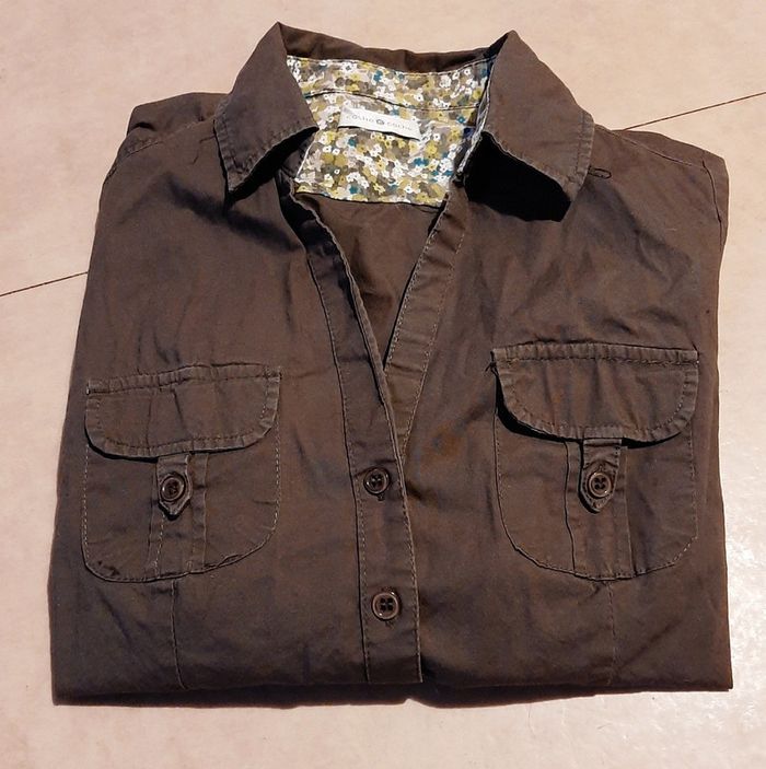Belle chemise kaki, taille 1 correspondant à du S. En très bon état. Seul chose à noter, 2 boutons sont manquants. Un de rechange est fourni avec la chemise, et il suffit de le recoudre dessus. Pour ce qui est du deuxième, s'il n'est pas remplacé, cela ne compromet pas le bon usage du vêtement. Mais sinon peut être trouvé facilement en remplacement dans tout commerce. N'hésitez pas à aller faire un tour dans mon dressing de nombreux autres articles à vendre à des tout petits prix et prix dégressif sur les lots 🙂🌸je reste disponible pour toutes questions