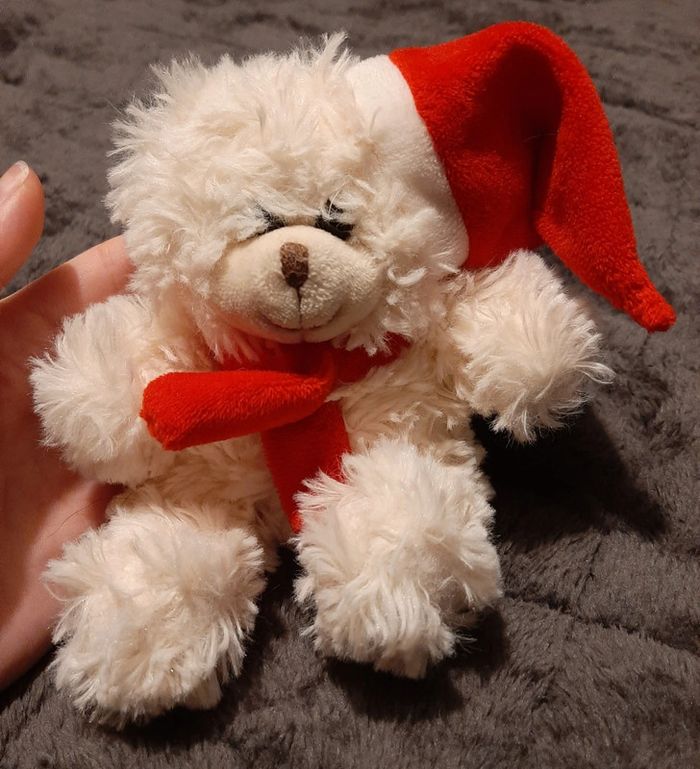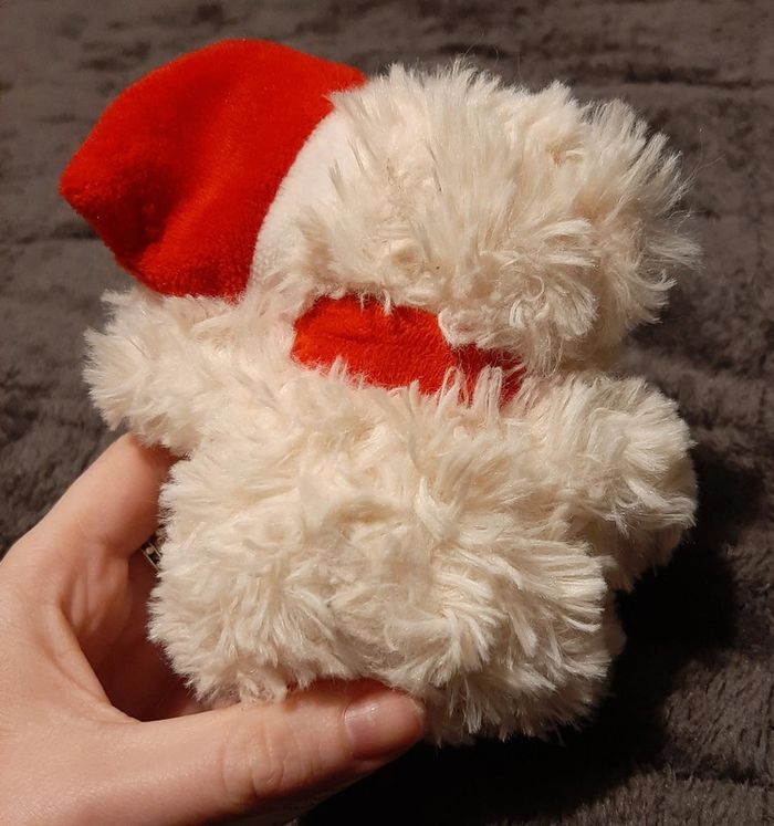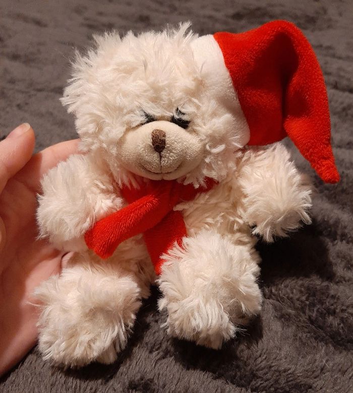 Petite peluche ours blanc, habillé avec un bonnet et une écharpe rouge dans un esprit de Noël 🎄. En très bon état. Toute douce. N'hésitez pas à aller faire un tour dans mon dressing de nombreux autres articles à vendre à des tout petits prix et prix dégressif sur les lots 🙂🌸je reste disponible pour toutes questions.