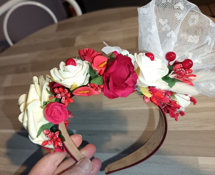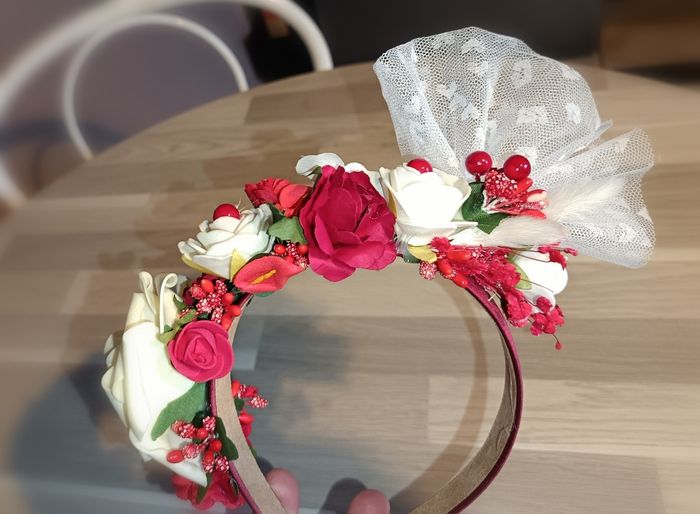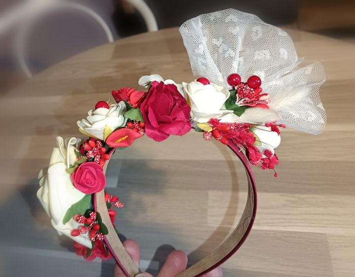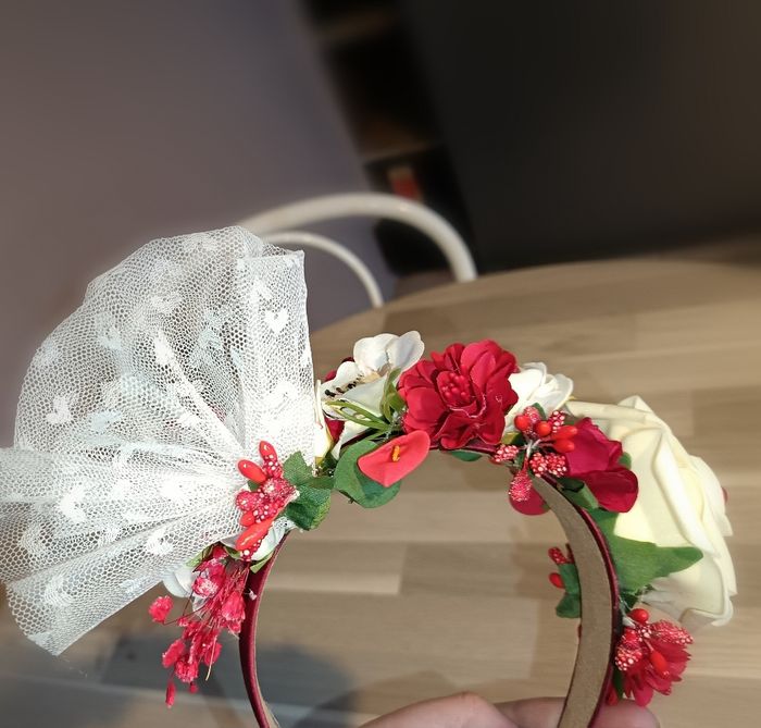 Serre tête mariage ou cérémonie qui en fleurs et tulle Ceinture assortie possible