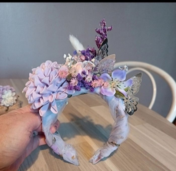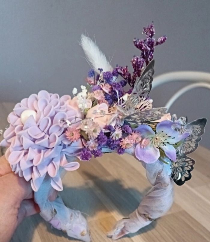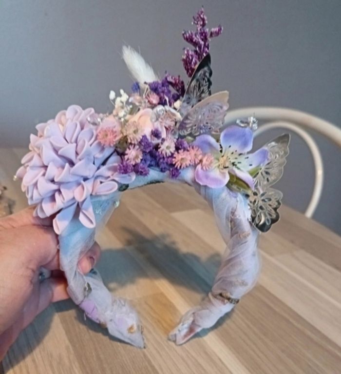 Serre tête mariage ou cérémonie qui en fleurs et tulle Ceinture assortie possible et bracelet
