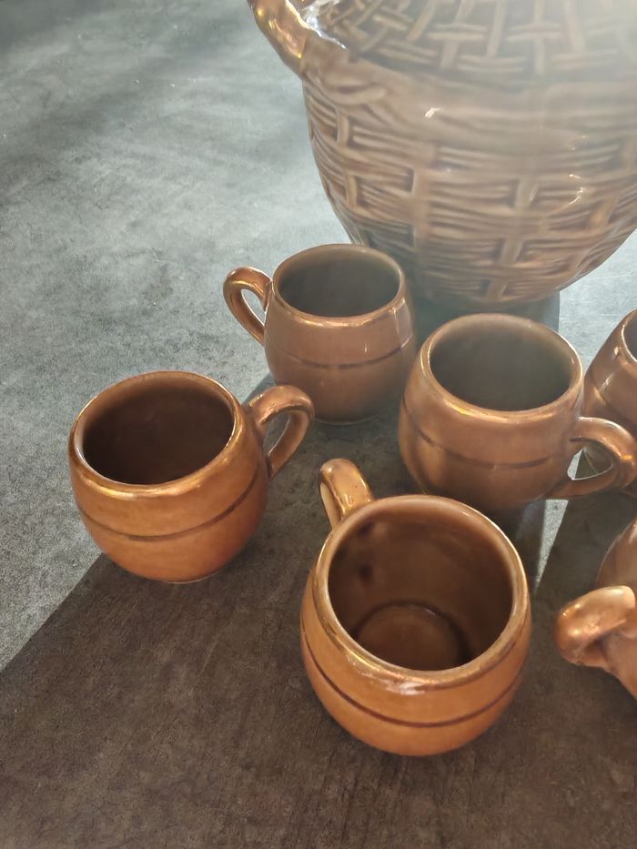 Ensemble bouteille (Environ 16cm de haut pour 11cm de diamètre) et ses 6 petits verres.