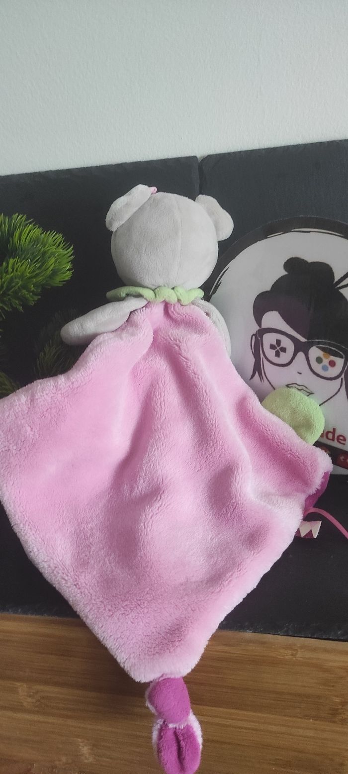 Baby Nat Les Super doudous Doudou plat ours rose violet vert fleur crak Noeud gris - photo numéro 2