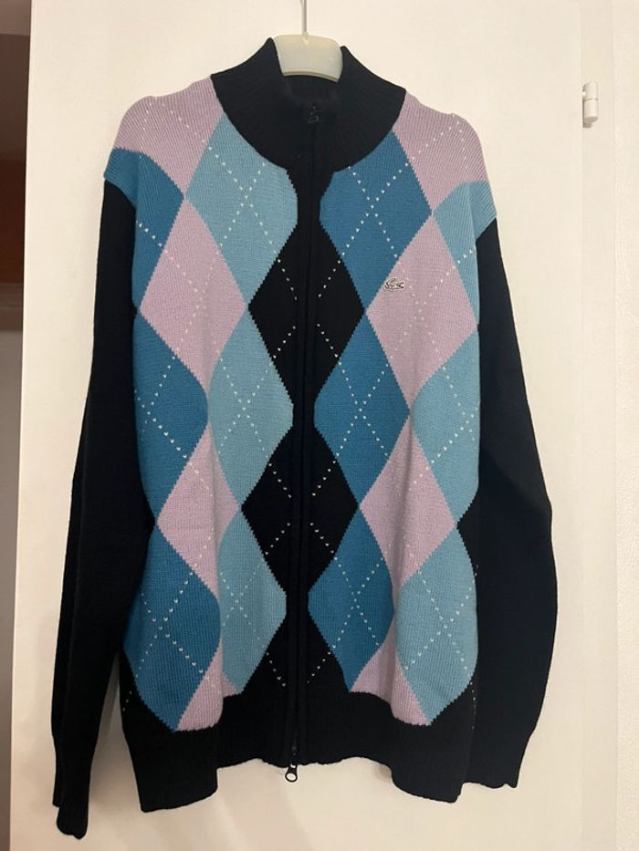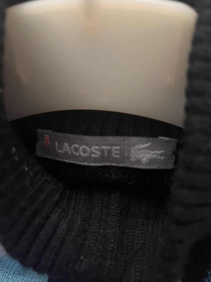 Gilet Lacoste 100% laine Taille 5 (correspond à du L) Dimensions : -Hauteur : 68 cm -Largeur sous les aisselles : 55 cm -Longueur des manches : 80 cm