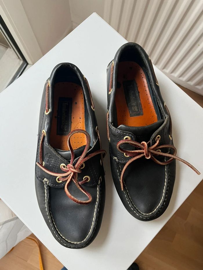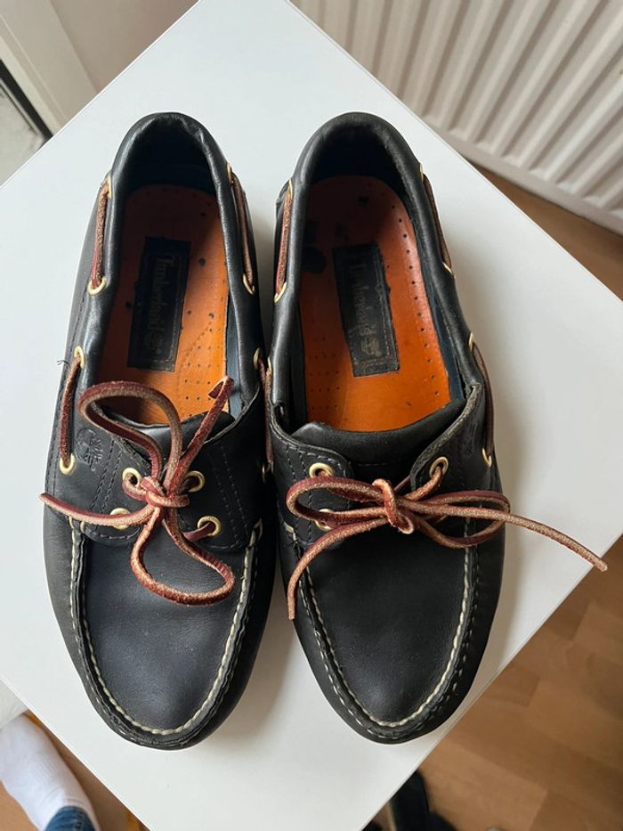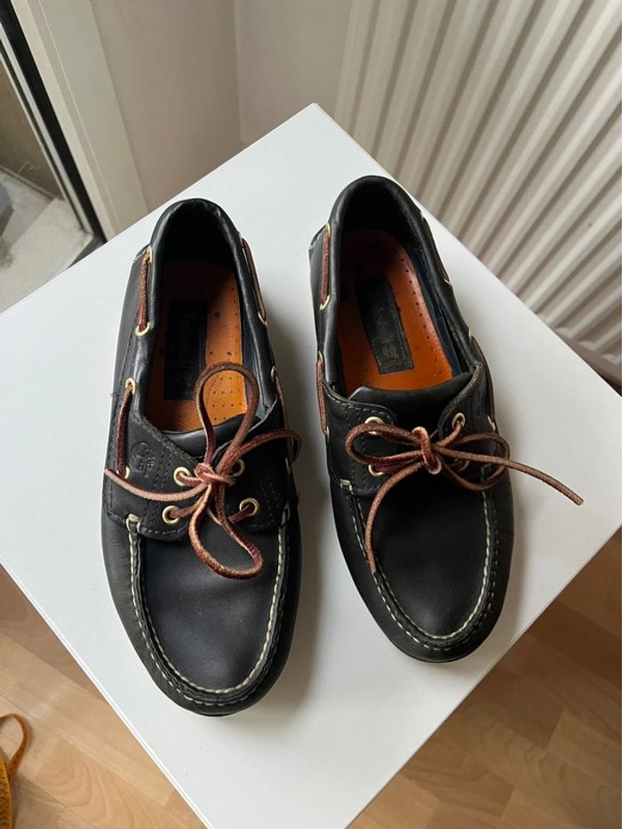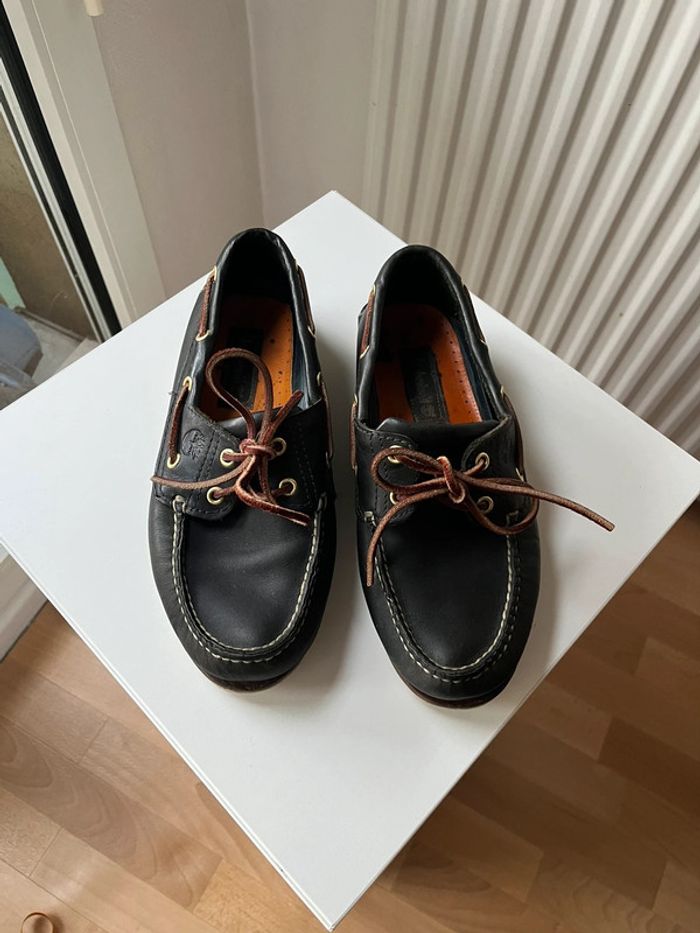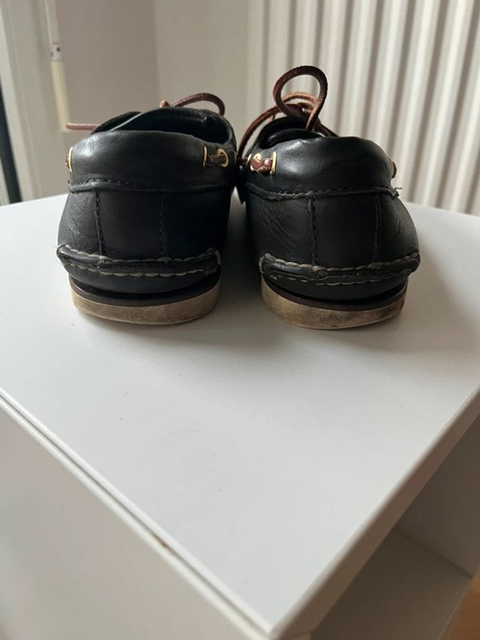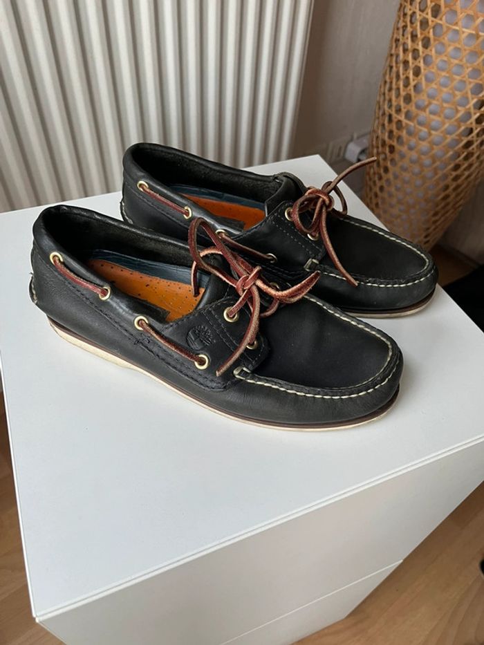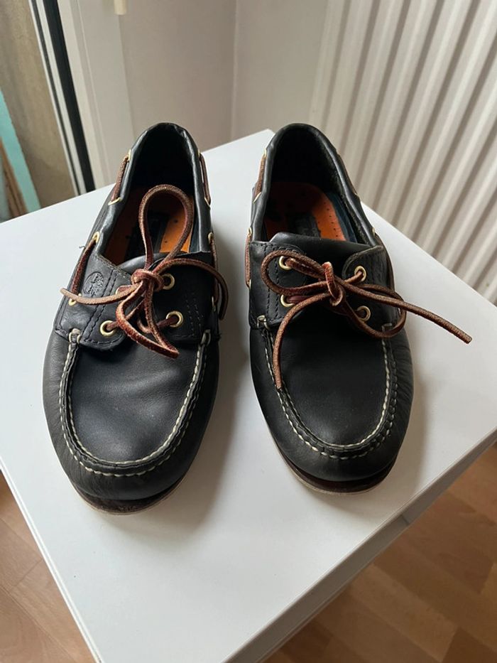 Chaussures bateau en cuir bleu marine Marque Timberland Pointure 41 (US 7,5) Bon état, traces d’usure Vendues sans la boîte d’origine. Vendues neuves à 150€