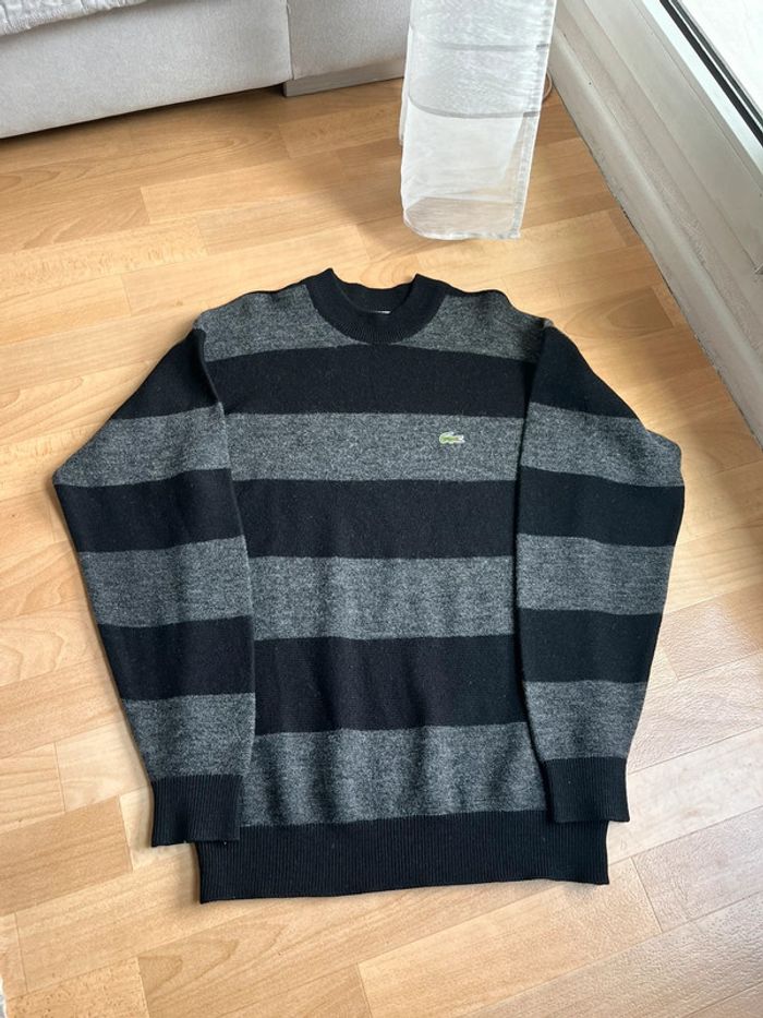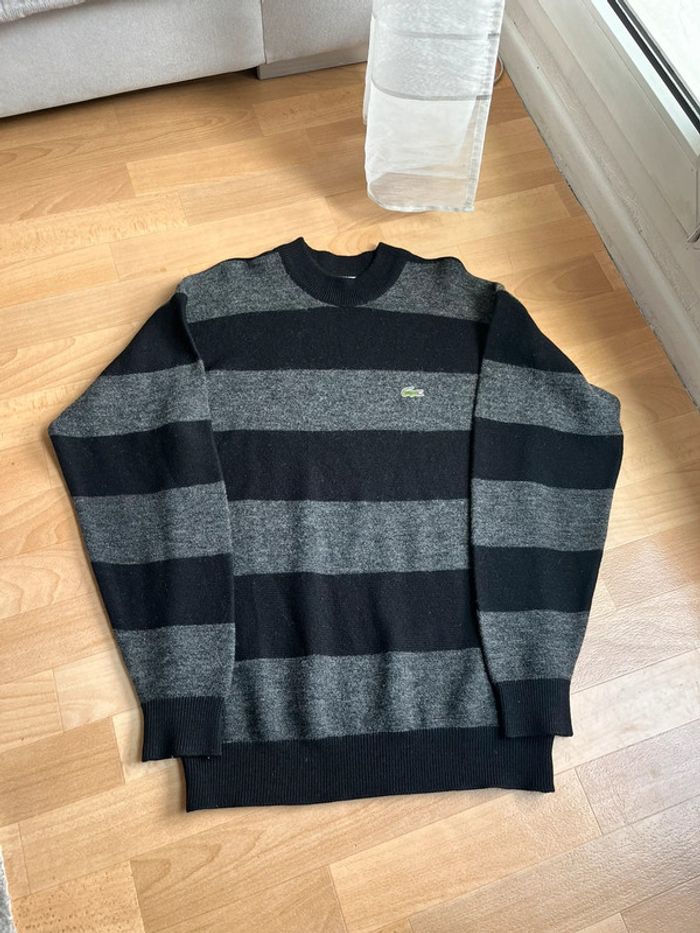Pull Lacoste noir et gris à rayures - photo numéro 1