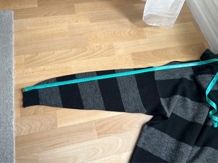Pull Lacoste à rayures noir / gris Taille 4 (correspondant à du S) Matière : 51% laine 49% acrylique Mesures : -longueur du pull : 73 cm -largeur au niveau des aisselles : 49-50 cm -longueur de la manche (depuis le bas du col) : 78 cm environ