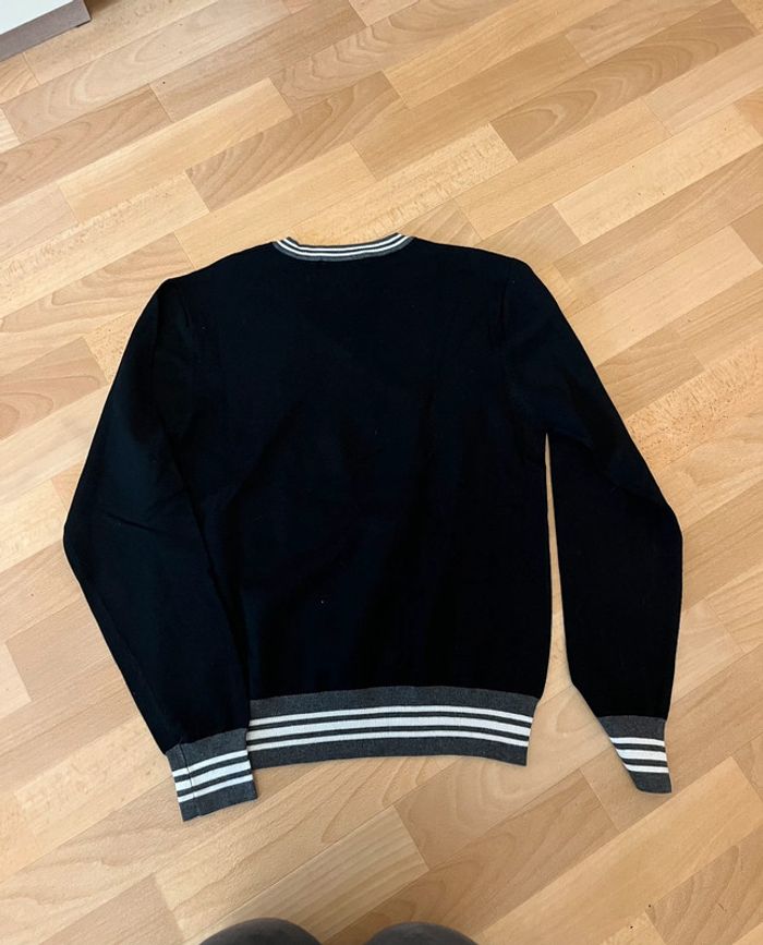 Pull col V Ralph Lauren Étiquette indique une taille L mais le modèle taille petit, il s’agit plutôt d’un S/M. Mesures du pull : -longueur épaule-bas du pull : 60,5-61 cm -longueur épaule-poignet : 62 cm -longueur d’une aisselle à l’autre : 48 cm Matière : 55% coton 35% viscose 10% spandex