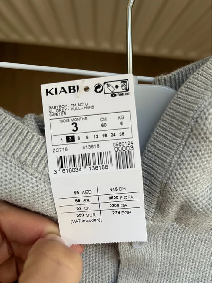 Sweat à capuche neuf avec étiquette. Taille 3 mois (56-62 cm). Acheté chez Kiabi. Couleur : gris clair. Composition : 50% viscose, 29% polyester, 21% polyamide.