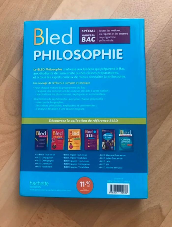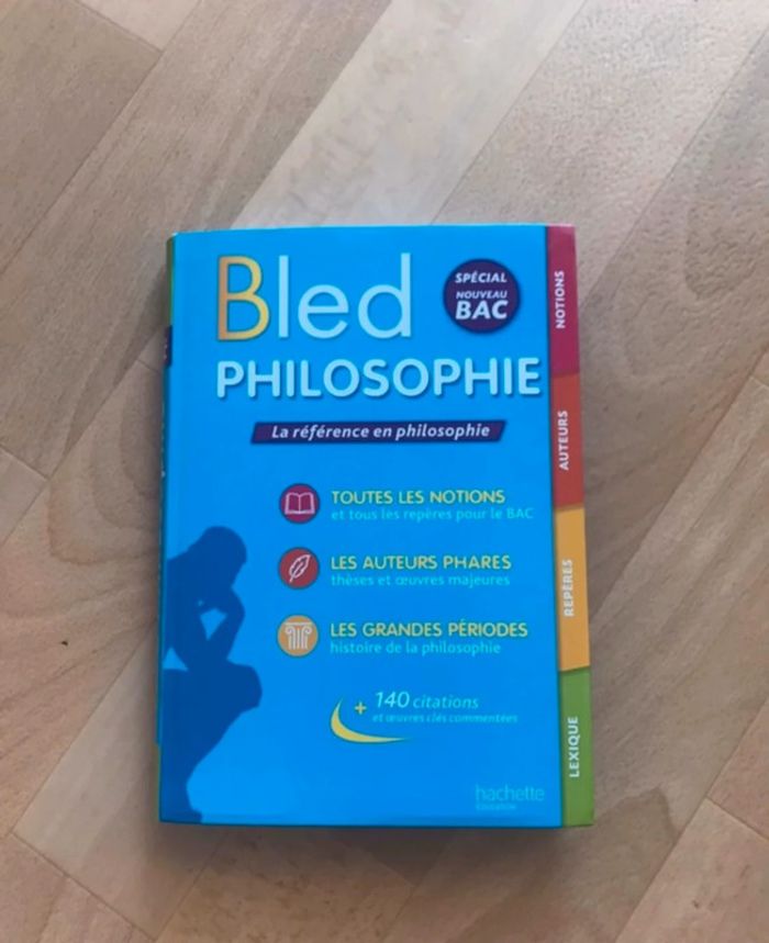 Bled de philosophie spécial nouveau bac en très bon état, non surligné et non annoté. Il s’agit d’un livre regroupant toutes les notions de philosophie du nouveau bac. Acheté 11€90, vendu pour 7€. Si vous avez des questions, n’hésitez pas.