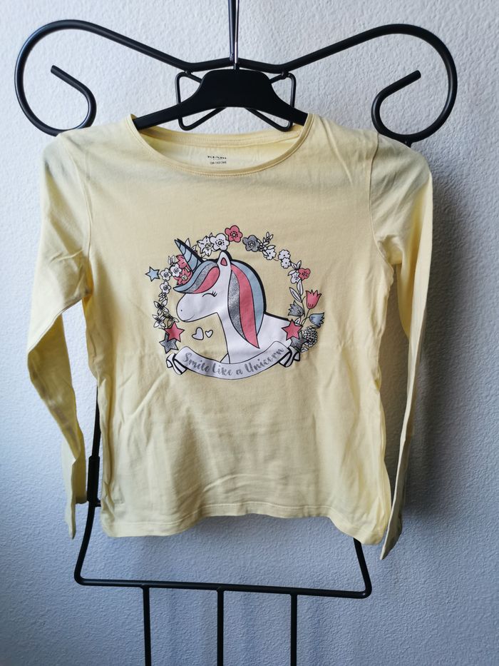 Tee Shirt à manches longues jaune pastel avec un motif licorne de la marque KIABI Taille 10ans