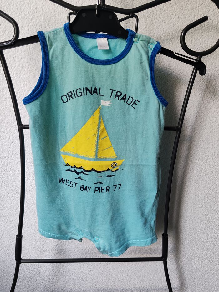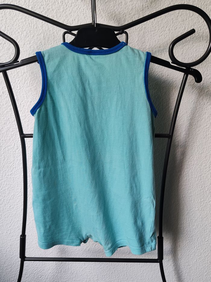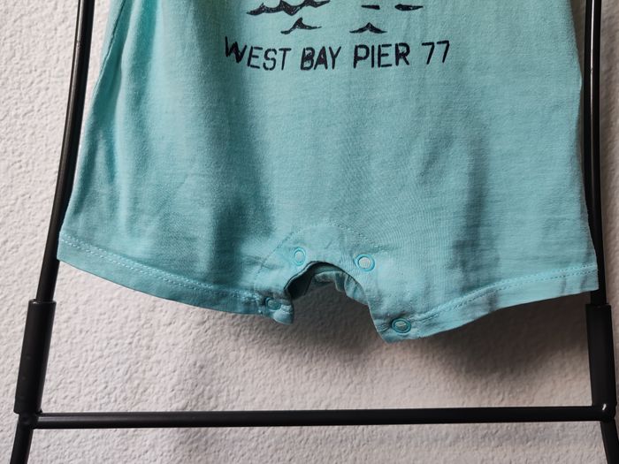 Tee Shirt Barboteuse à manches courtes bleu turquoise pour petit garçon avec pressions dans l'entrejambe de la marque TEX Taille 12mois