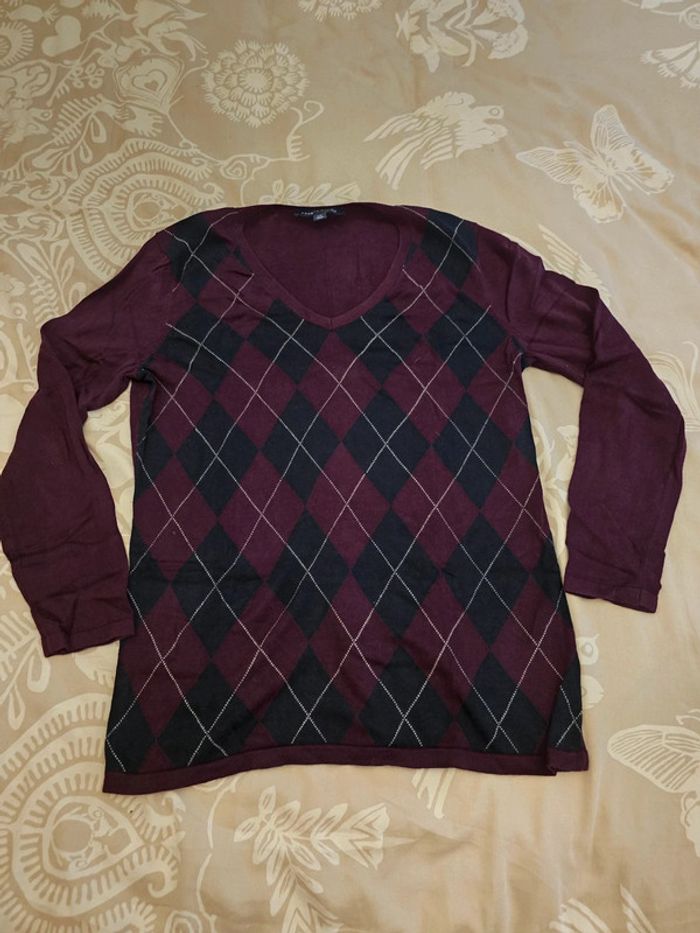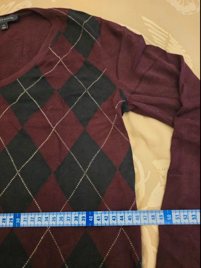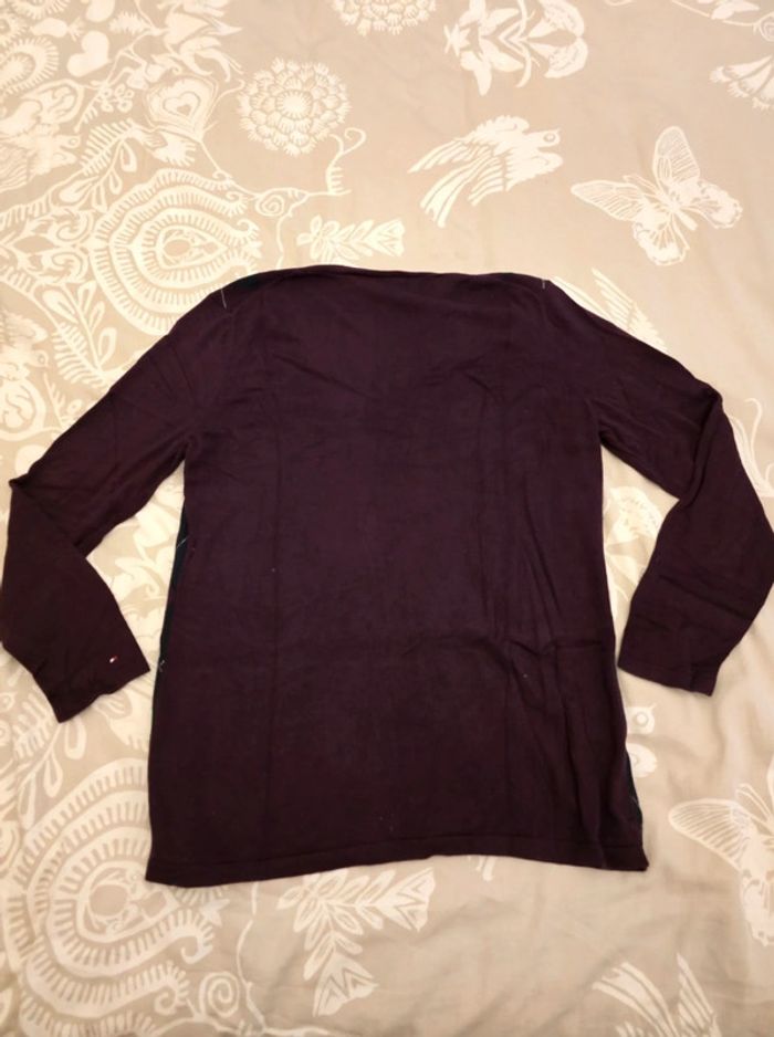 🌟 Pull col V violet motif jacard noir Tommy hilfiger homme - Taille  L 🌟 - photo numéro 1