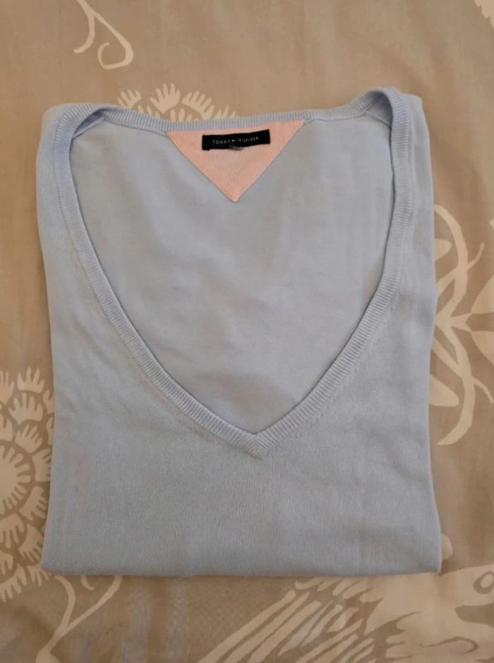 🌟 Pull col V bleu ciel Tommy hilfiger femme - Taille  S/M 🌟 - photo numéro 1
