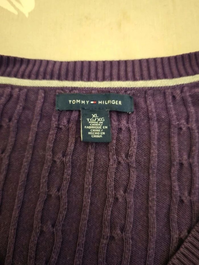 🌟 Pull torsadé col V violet / bleu marine Tommy hilfiger homme - Taille  XL 🌟 - photo numéro 2