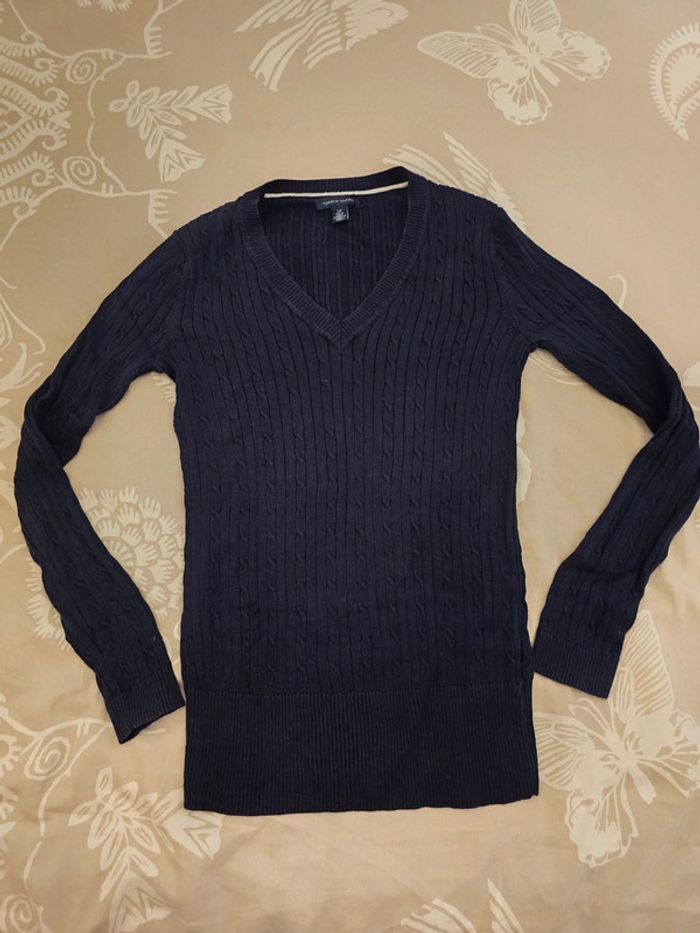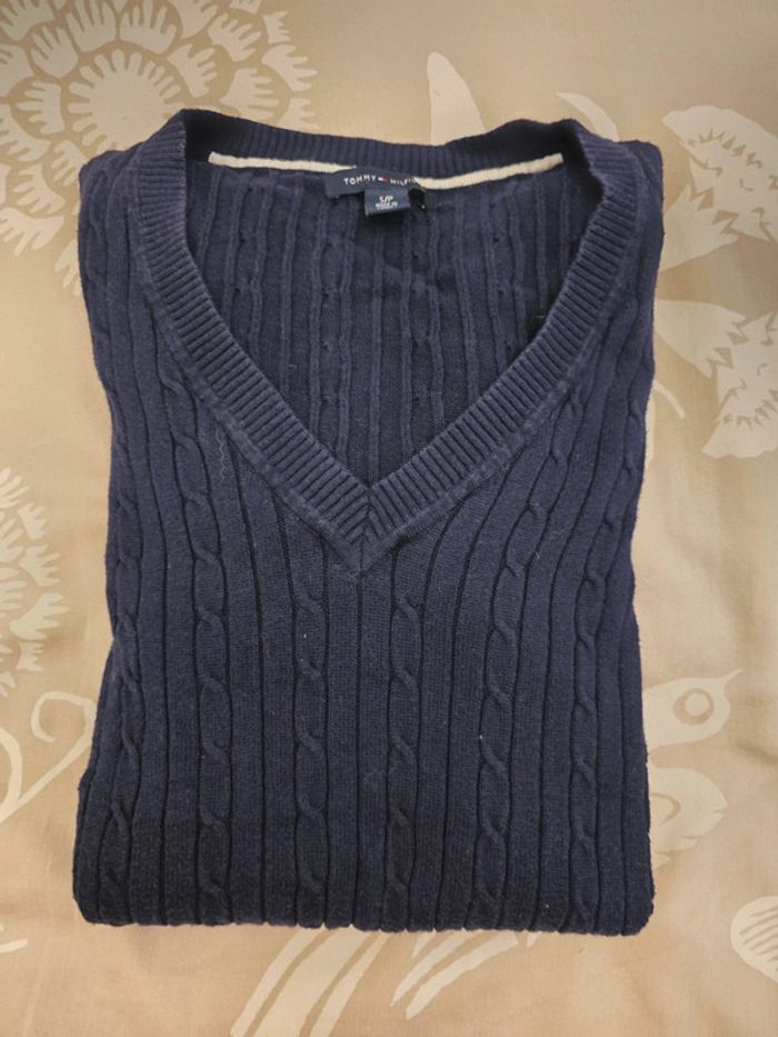 🌟 Pull torsadé col V bleu marine Tommy hilfiger femme - Taille  S 🌟 - photo numéro 1