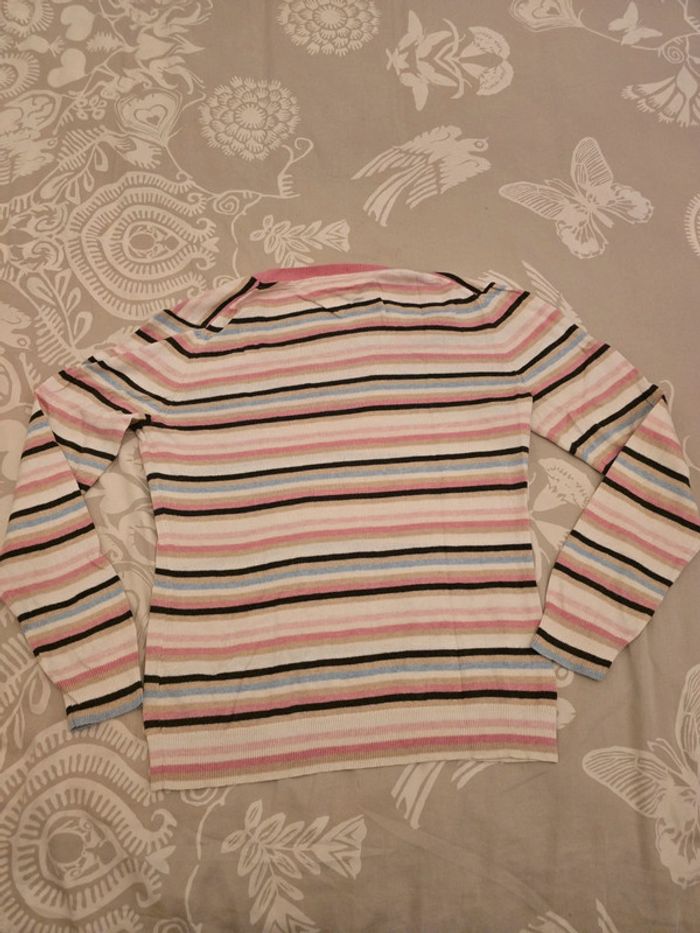 🌟 Pull col V rayé rose blanc bleu Tommy hilfiger femme - Taille  L 🌟 - photo numéro 4