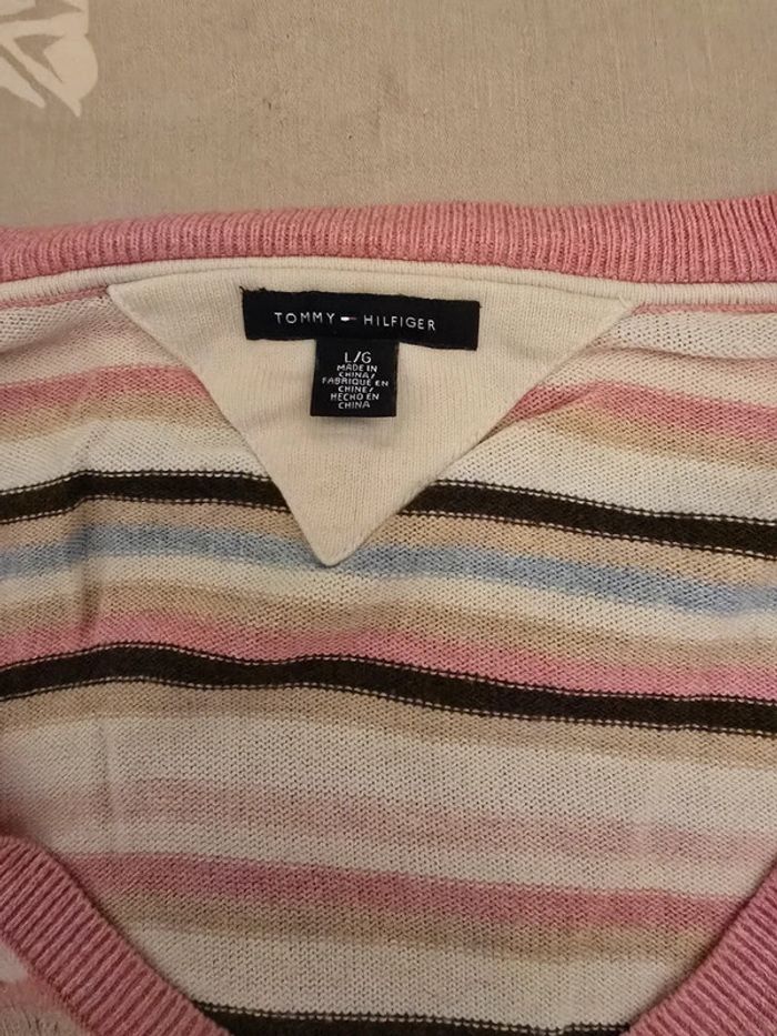 🌟 Pull col V rayé rose blanc bleu Tommy hilfiger femme - Taille  L 🌟 - photo numéro 2