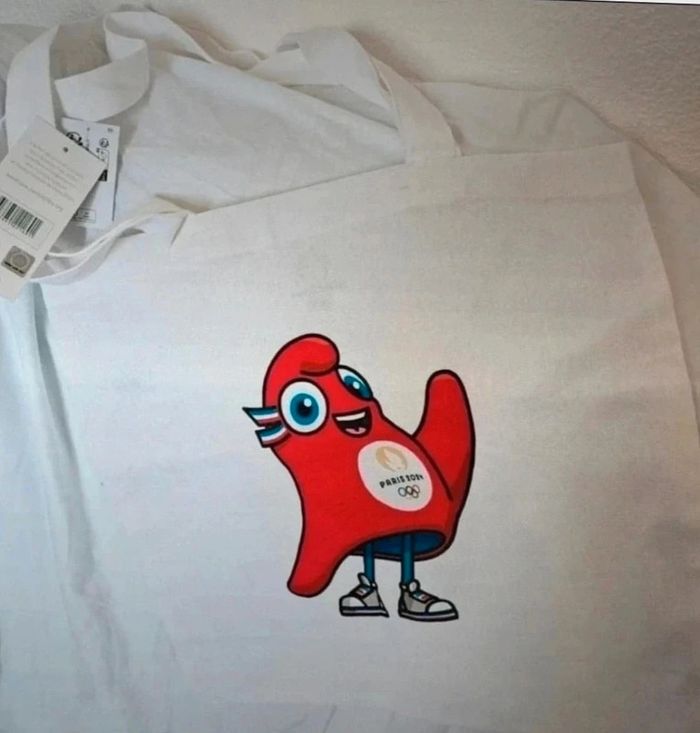 🌟 Tote Bag Blanc Mascotte Officiel Jeux Olympiques Paris 2024 🌟