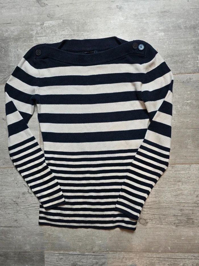 🌟 Pull col rond marinière bleu marine et blanc femme en coton Tommy Hilfiger - Taille S 🌟 - photo numéro 1