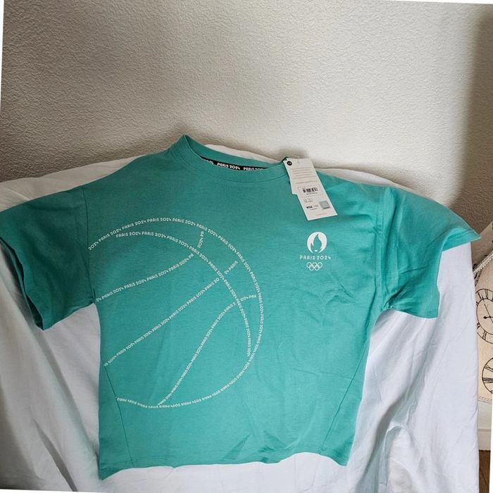 🌟 T-shirt Bleu Vert Basketball Officiel – Jeux Olympiques Paris 2024 🌟 - photo numéro 1