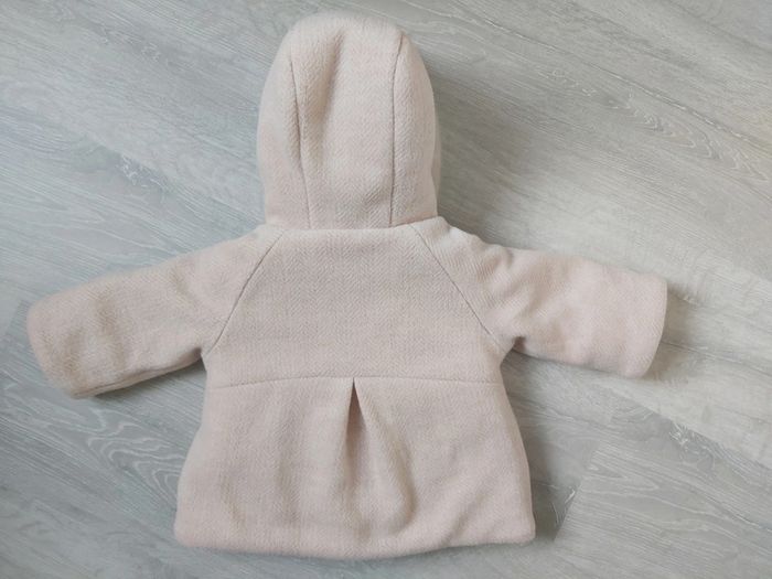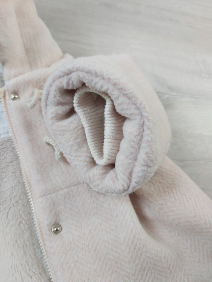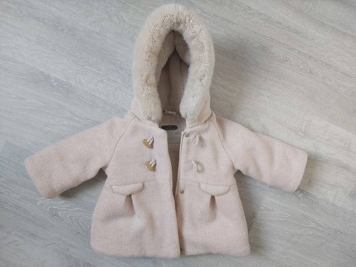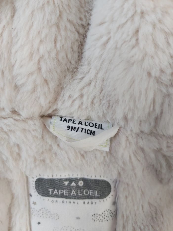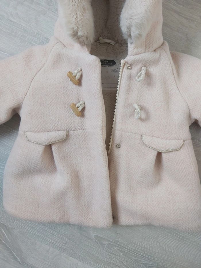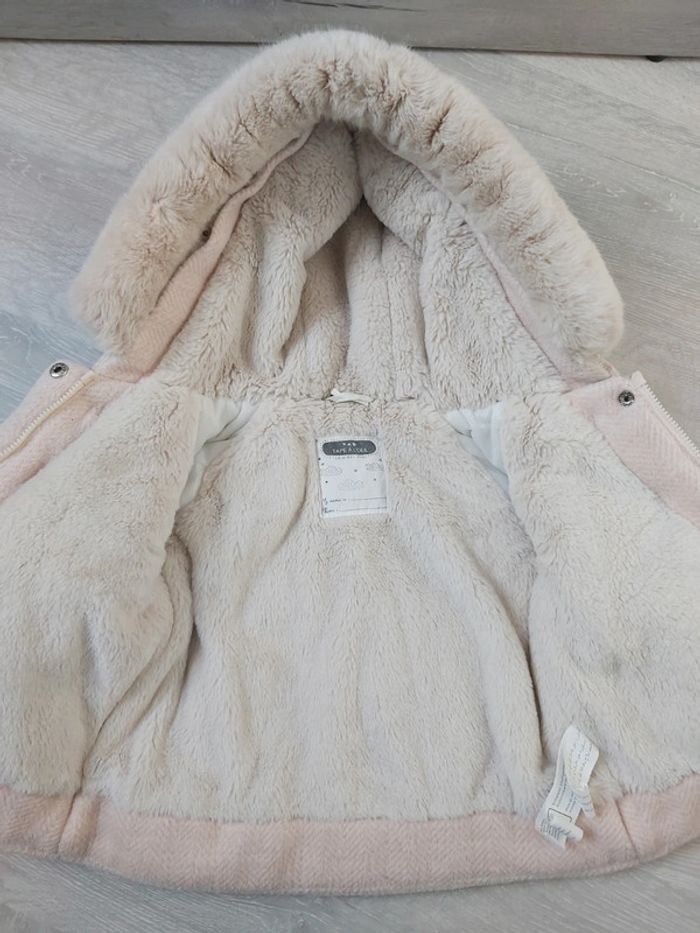 Manteau fille avec capuche marque TAO couleur beige rosé Taille 9 mois en très bon état. Fourrure amovible Fermeture éclair + boutons