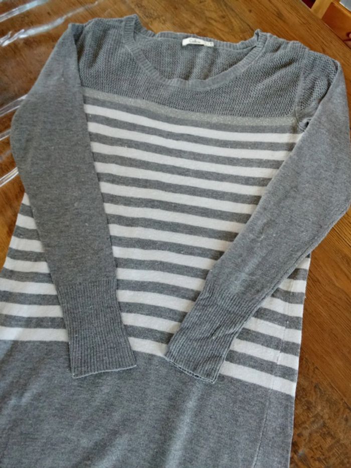 #stef62180_femme Vends une robe de grossesse de couleur gris et blanc Type marinière Marque colline taille 38-40 #robegrossesse38 #robegrossesse40 #colline3840