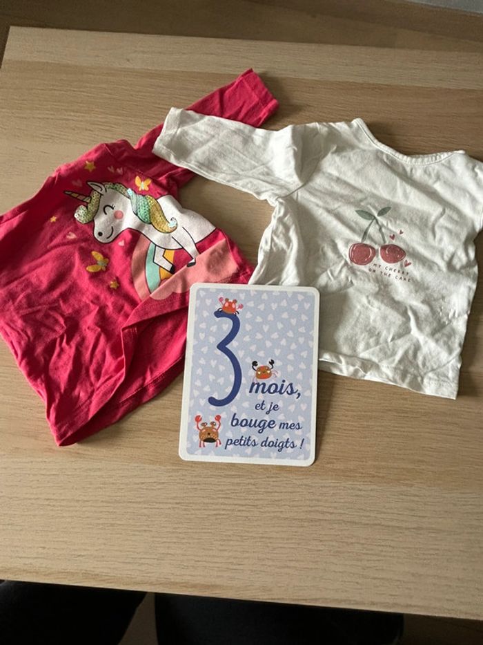 Lot 2 tee shirt manches longues 3 mois N’hésitez pas à faire un tour dans mon dressing de nombreux lots tailles : - naissance - 1 mois - 3 mois - 6 mois