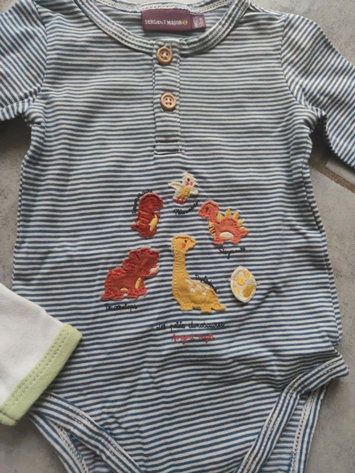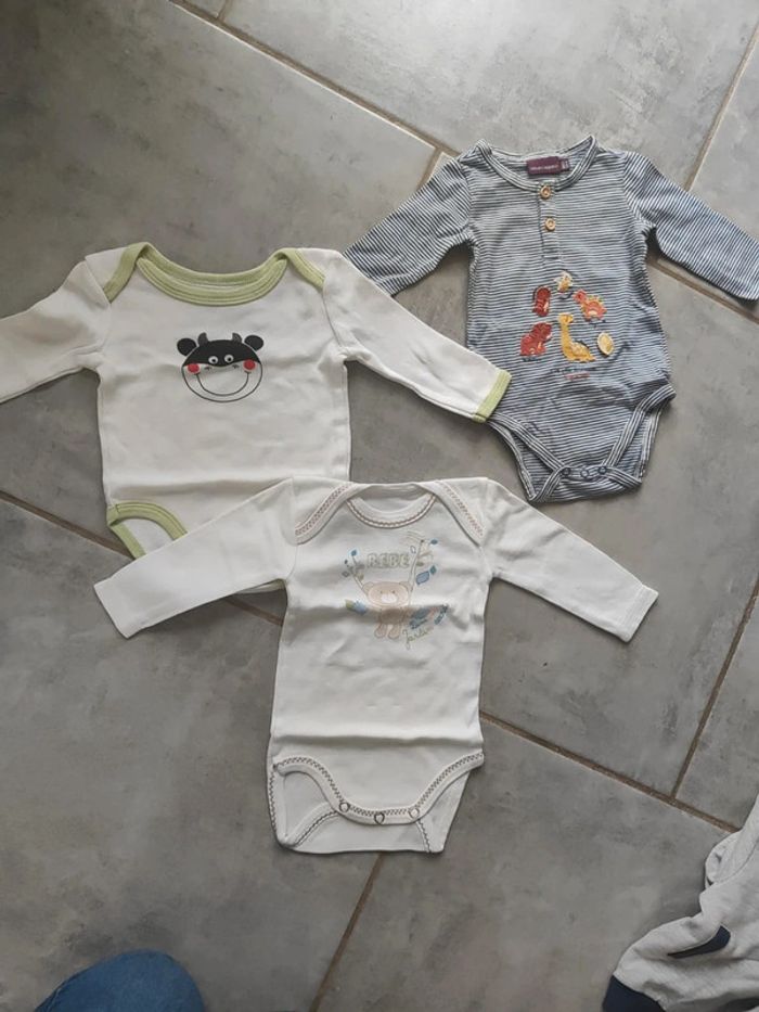 Lot 3 bodies 3 mois très bon état Celui du milieu est neuf ! Celui de droite sergent major Sans trou ni tâche Lessive maison Envoie rapide Maison non fumeur