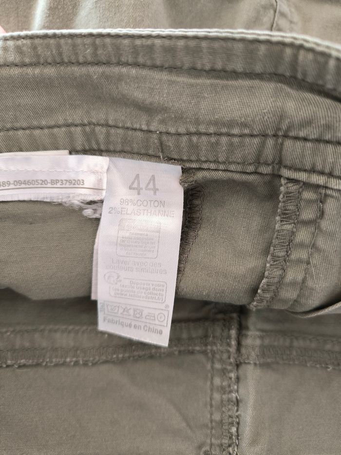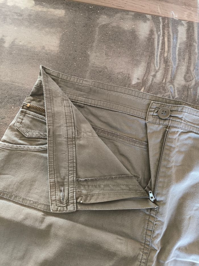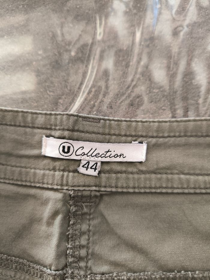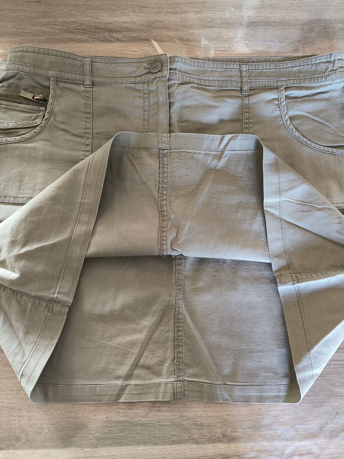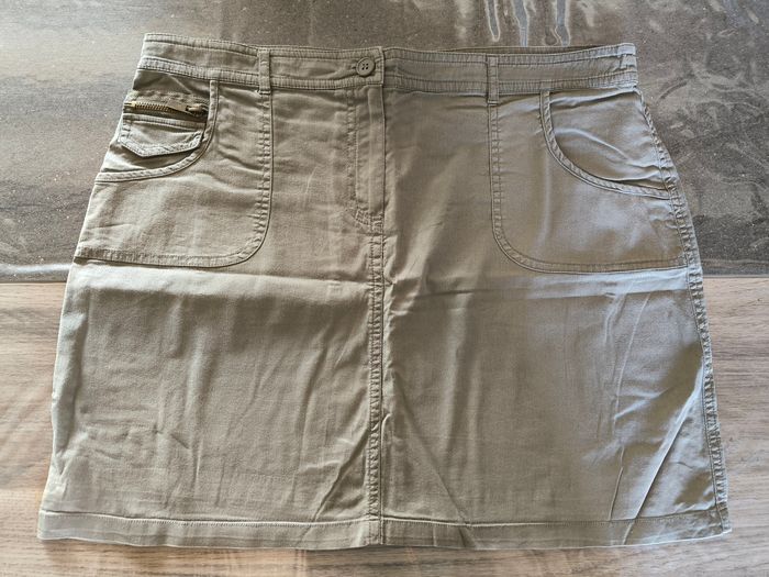 Jupe Marque U Collection Taille 44 • Coloris kaki • Fermeture par fermeture éclair et bouton • 4 poches • Coton fin, stretch • Petit fil de tiré sur l'arrière Largeur taille non étirée : 45 cm Largeur taille étirée au maximum : 47 cm Longueur totale : 45 cm Largeur bas jupe : 59 cm En très bon état #evelyne_taille_44