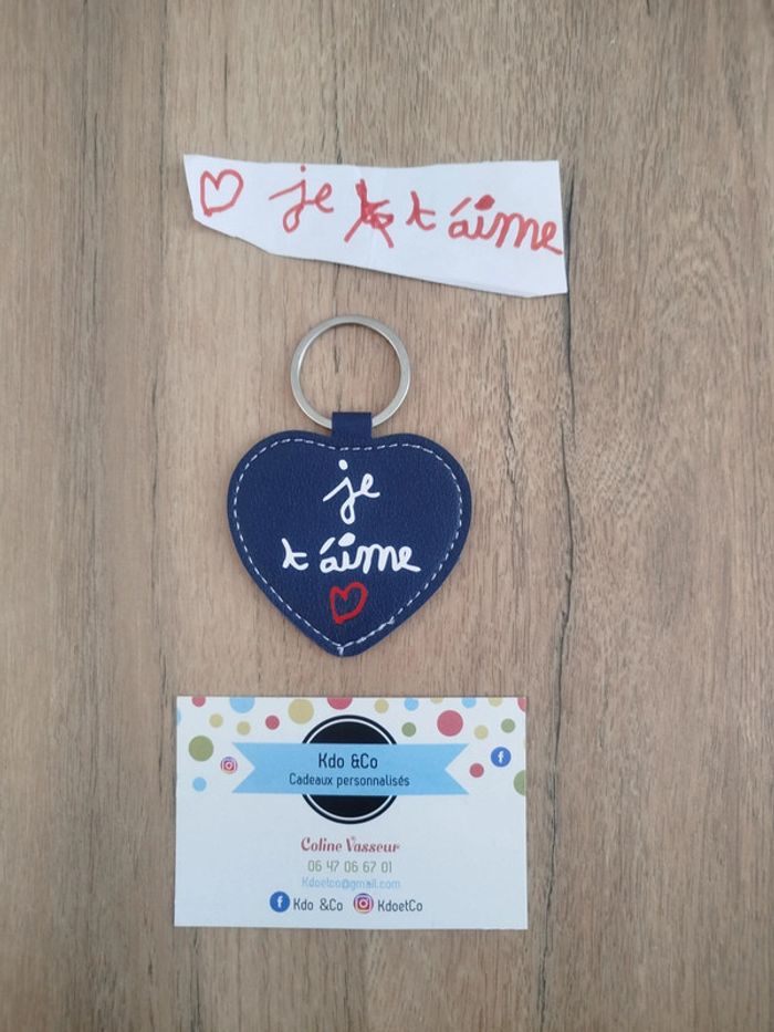 Porte-clé en similicuir Forme cœur Je t'aime, reprise de l'écriture de l'enfant Idéal pour la fête des pères, fête des mères par exemple #Papa_KdoetCo #Mzman_KdoetCo #Papy_KdoetCo #Mamie_KdoetCo #Parrain_KdoetCo #Marraine_KdoetCo #PorteCle_Kdo&Co