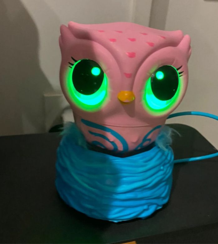 Jouet hibou qui vole Quand il sera heureux et en bonne santé, tu pourras lui apprendre à voler ! Ses yeux s’illuminent, il est doté de capteurs sensoriels sur sa tête et son ventre. Il hulule même lorsqu’il est prêt à voler ! Magique : il se recharge lorsqu’on le met dans son nid