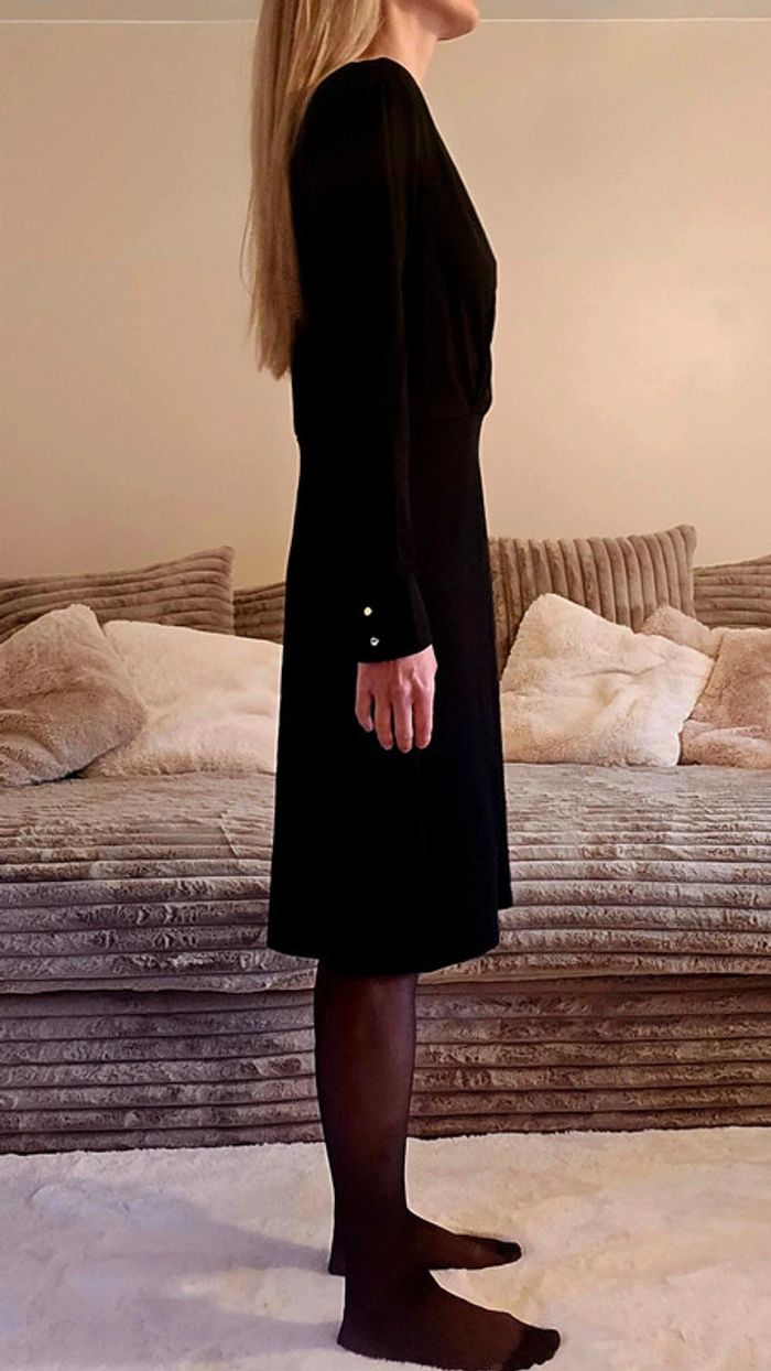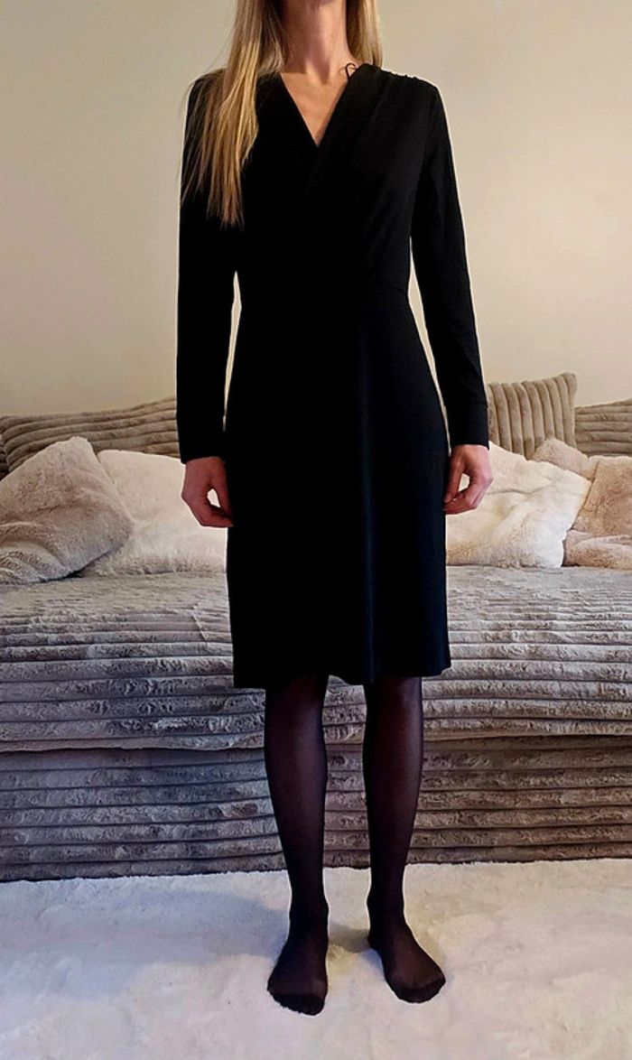 Robe élégante, tant pour une soirée, que pour une journée d'été. La matière est hyper confortable et très élastique. Le modèle fait un 34 : le S a bien épousé ses formes. Peut convenir à un 38. #robe #robenoire #robe36femme #robehm #robeété #robesoirée