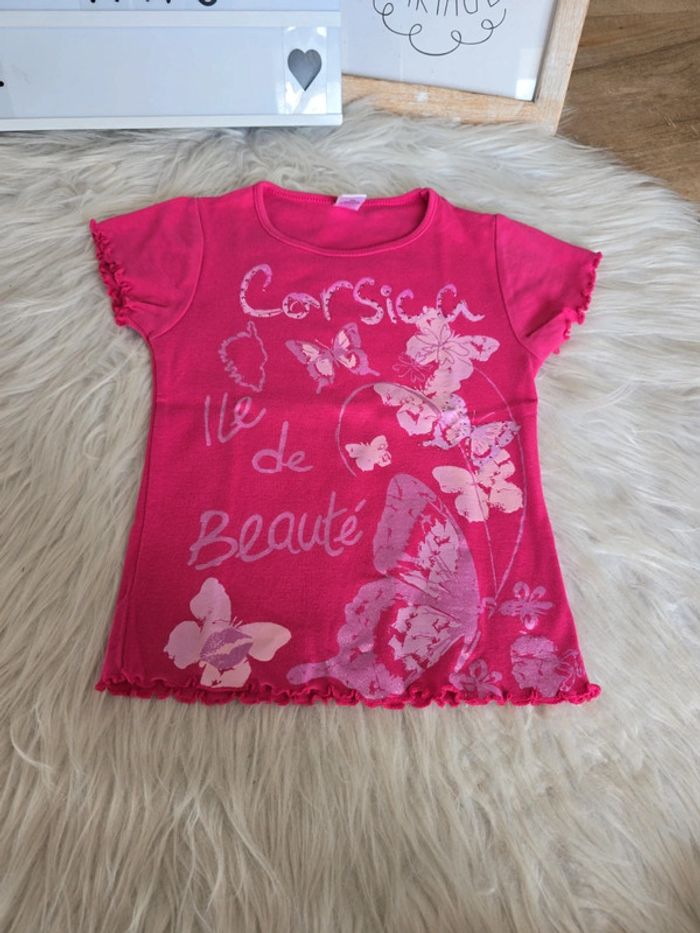 Ensemble t-shirt + short T-shirt rose fushia avec dessin papillon et strass Taille 4 ans Marque : citadel Très bon état Short bleu marine et bas en dentelle blanc Fermeture éclair et pression Réglable à la taille Taille 4 ans Marque : H&M Très bon état #4ansfillebaba18bb