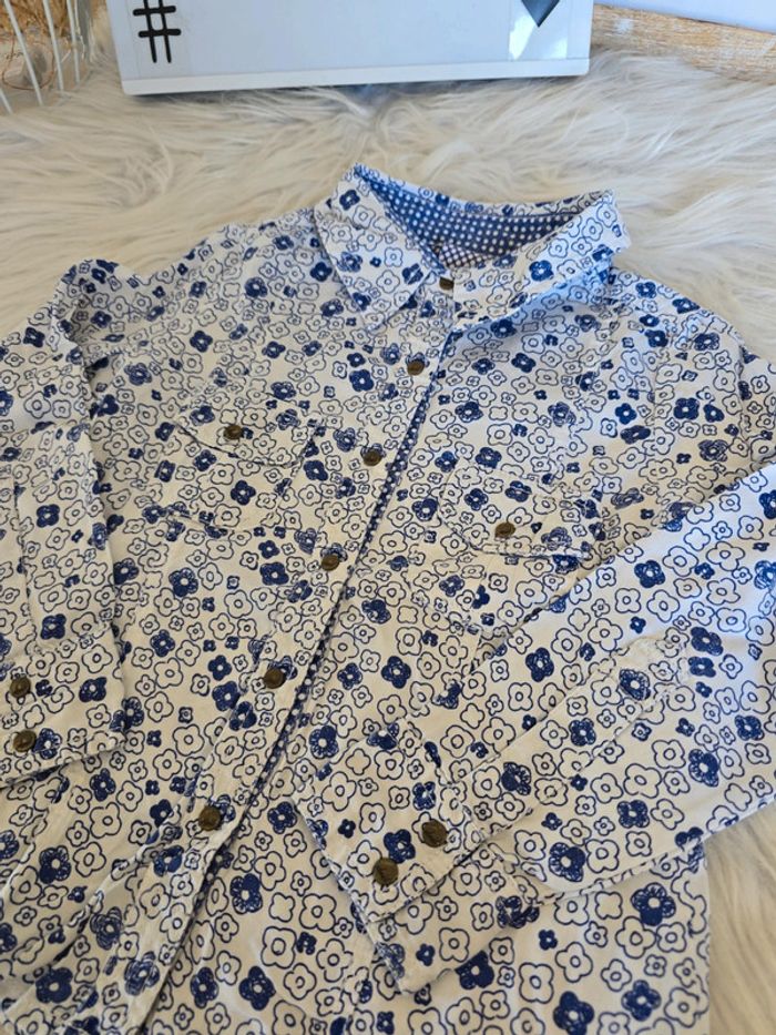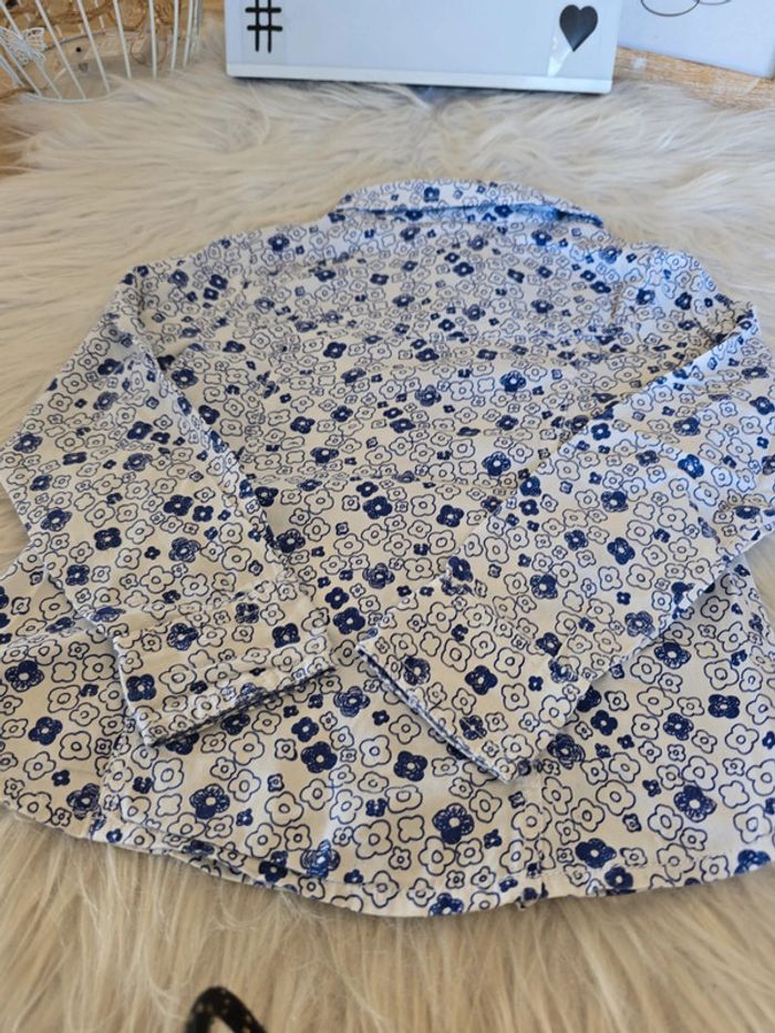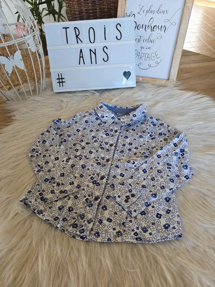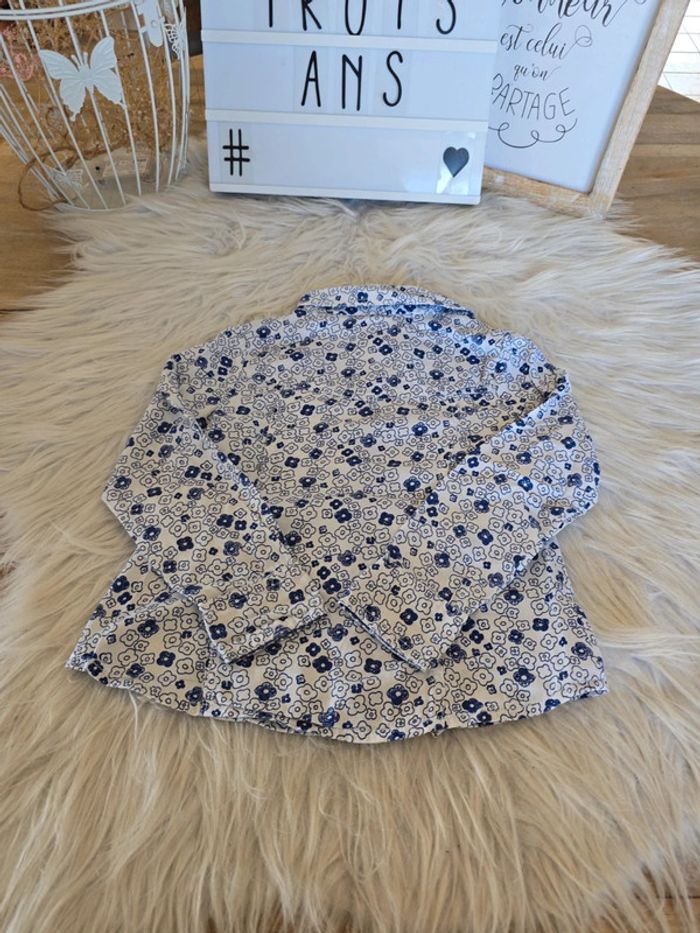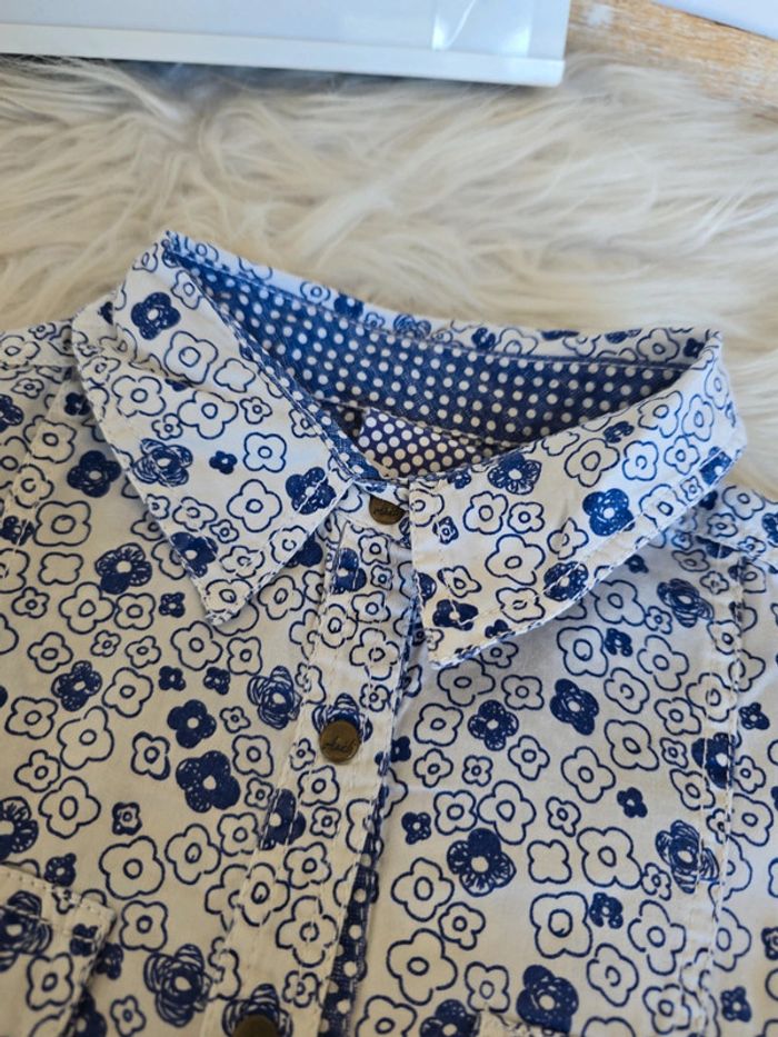 Chemisier bleu et blanc fleuri Fermeture par pressions 2 poches devant Taille 3 ans Marque okaïdi Très bon état #3ansfillebaba18bb
