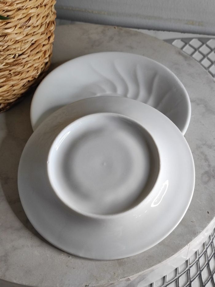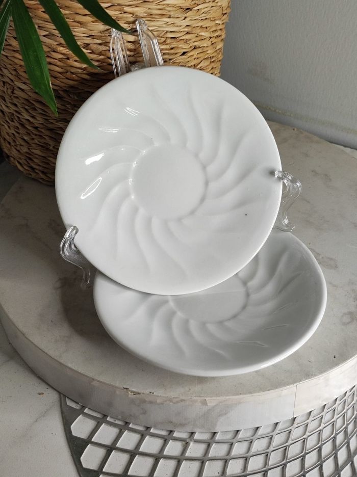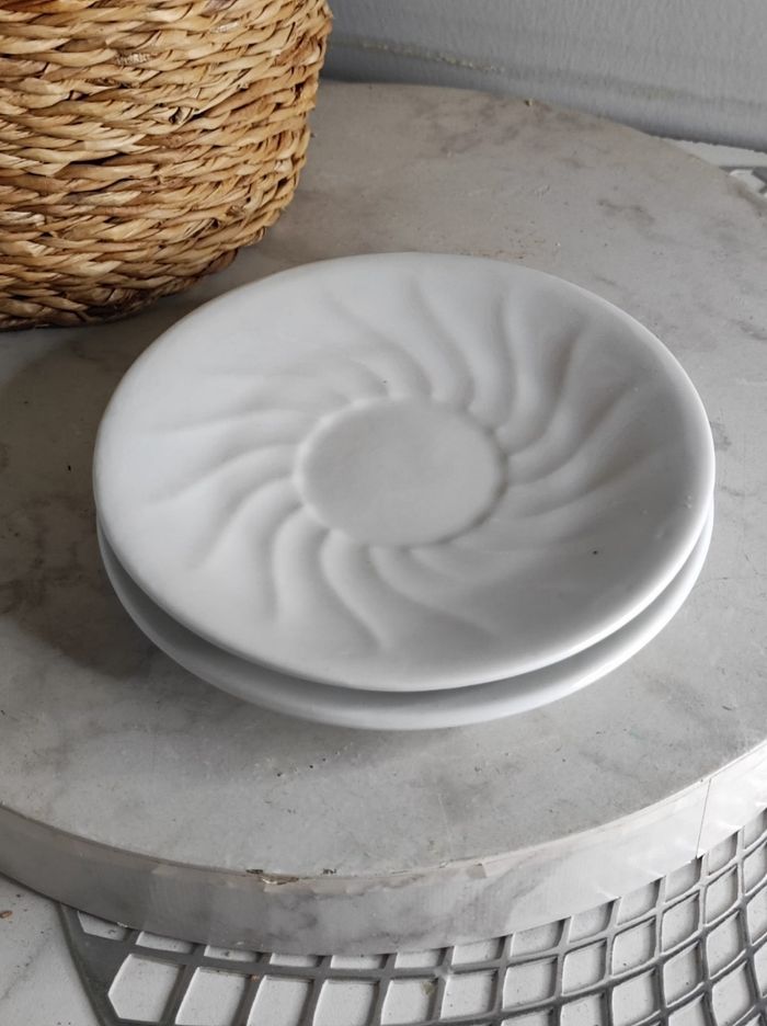 Duo de deux dessous tasses blanche en céramique a forme d'un soleil. Très bon état Diamètre 13cm