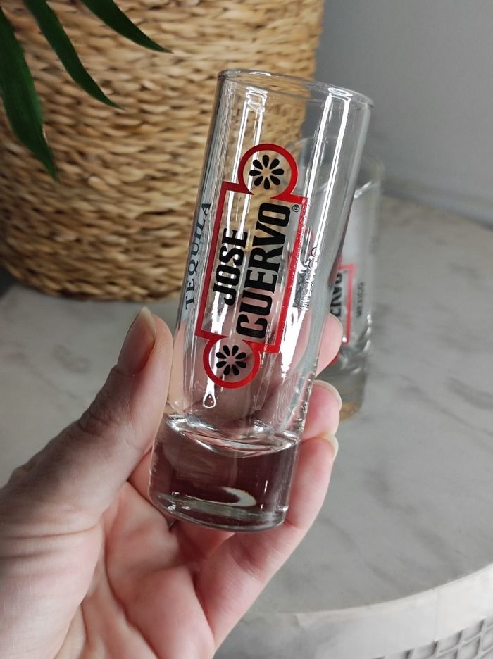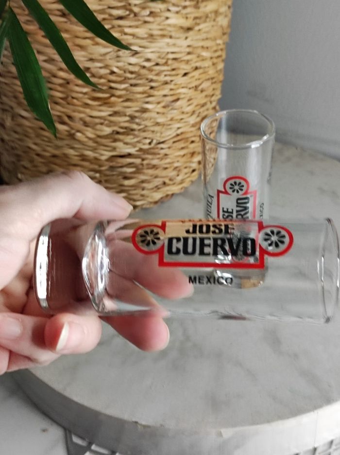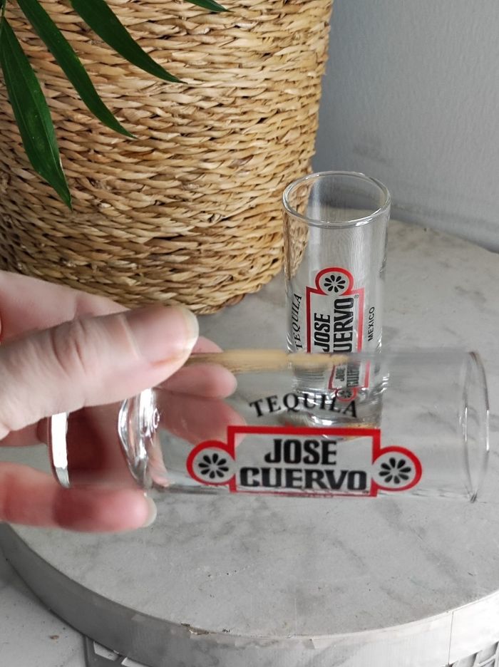 Duo de petits verres tequila / shooter Inscription mexico jose cuervo tequila. Dimensions H10,5x D3,7 En parfait état
